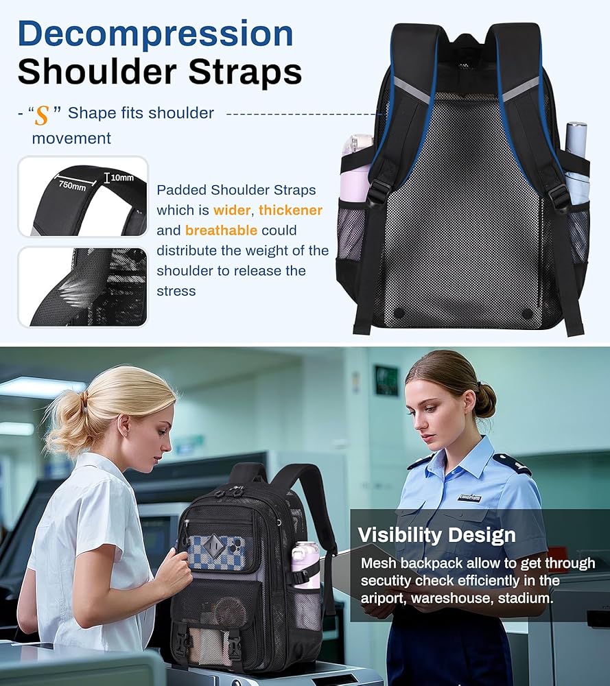 Time-saving &Convenient: The see through backpack features visibility, passing through security checkpoints quickly in the airport, stadium, warehouse. Additional, it's convenient to double-check that you have everything you need before leaving home