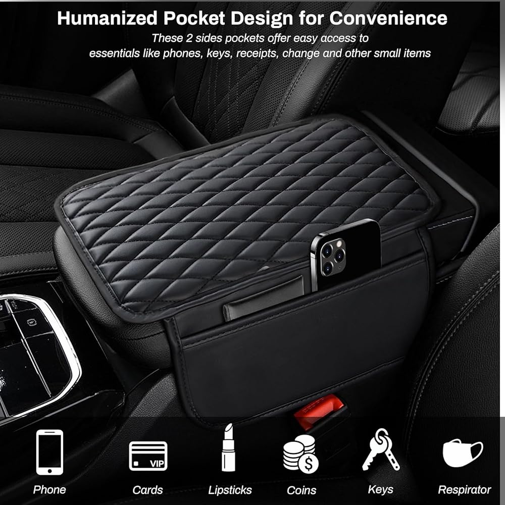 [Enhanced Storage & Comfort for Your Drive] Upgrade your car's interior with our premium center console cover, designed for both style and functionality. Measuring 12 x 8 inches, it features dual side storage pockets (8.66 x 5.12 inches) on each side, perfect for holding your phone, keys, tissues, and other daily essentials. Keep your essentials within easy reach while expanding your vehicle's storage space.