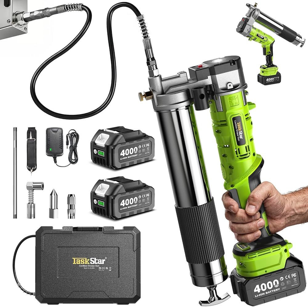 Professional Support: Enjoy peace of mind with TaskStar's three-year technical support; TaskStar team is dedicated to resolving any issues within 12 hours; for optimal performance, fully charge the batteries before first use, ensuring a smooth start to all your greasing tasks