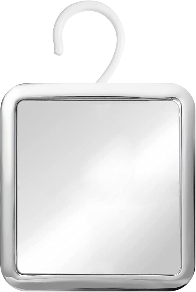 #1 - HOOK FOR SECURE AND EASY HANGING: Toss aside suction cups that fall and let you down! With a sturdy 360° rotatable hook, this mirror stays put, no matter what. Designed like a coat hanger, you can hang it on a shower head, towel rack, shower caddy, or curtain rod - the possibilities are endless!