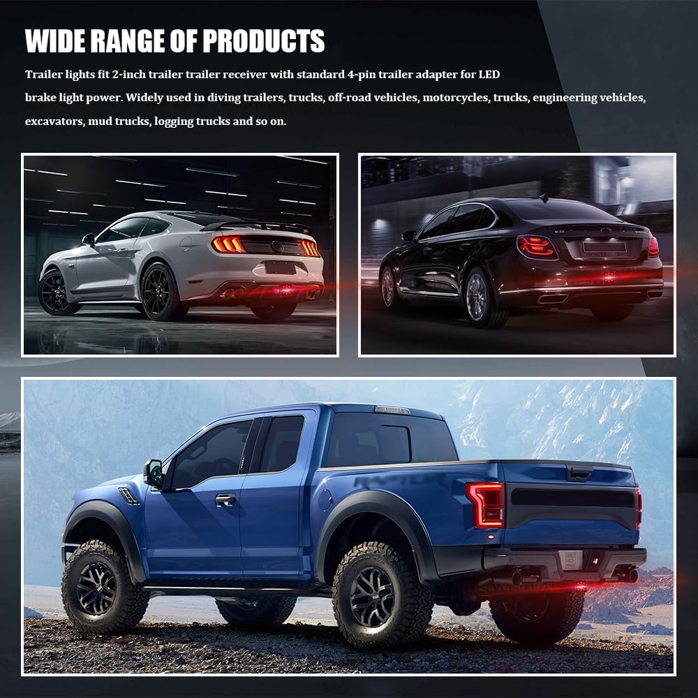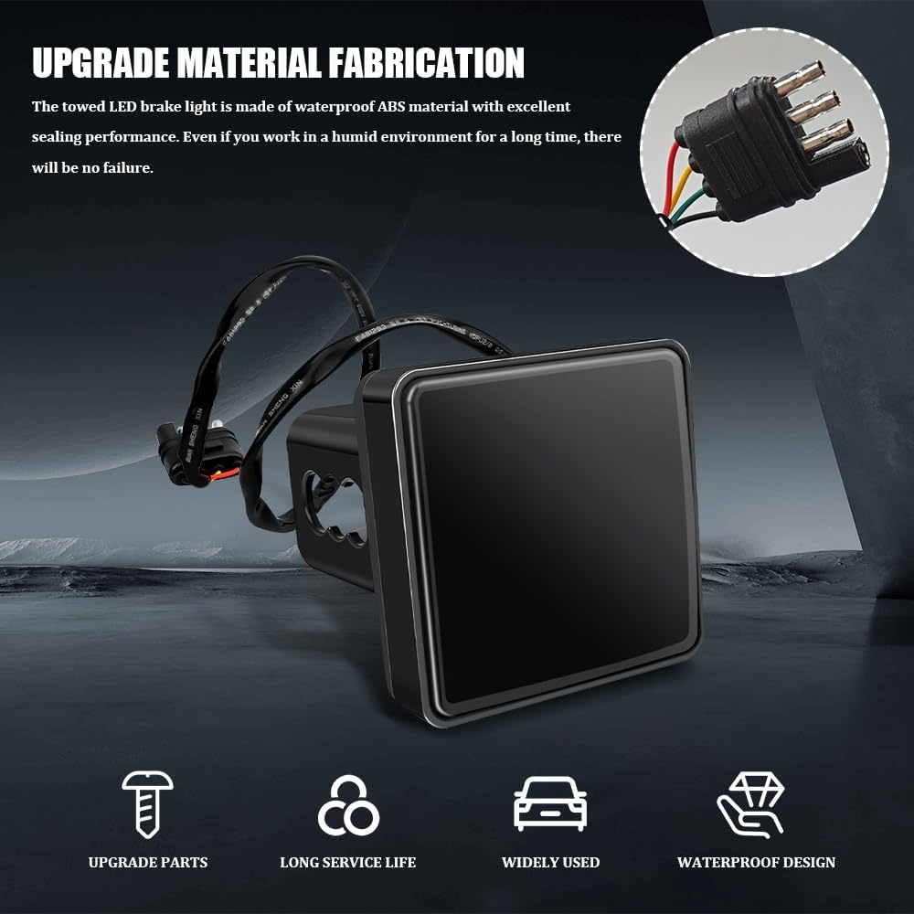 [Suitability] : This truck hitch light fits a 2" x 2" trailer hook receiver with a standard 4-pin trailer adapter and can be used on most 12V trucks, SUVs, RVS, trailers, please check the size carefully before purchasing to ensure a good fit