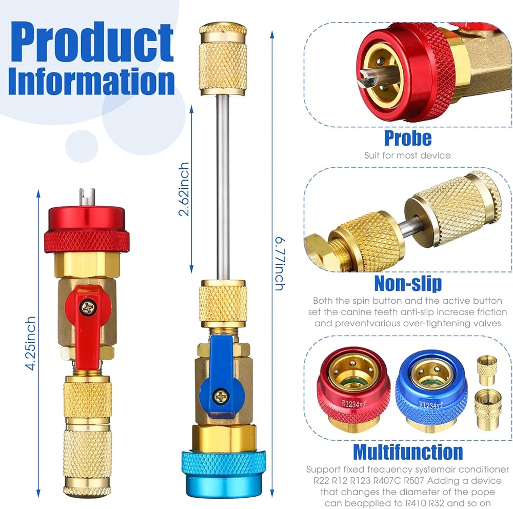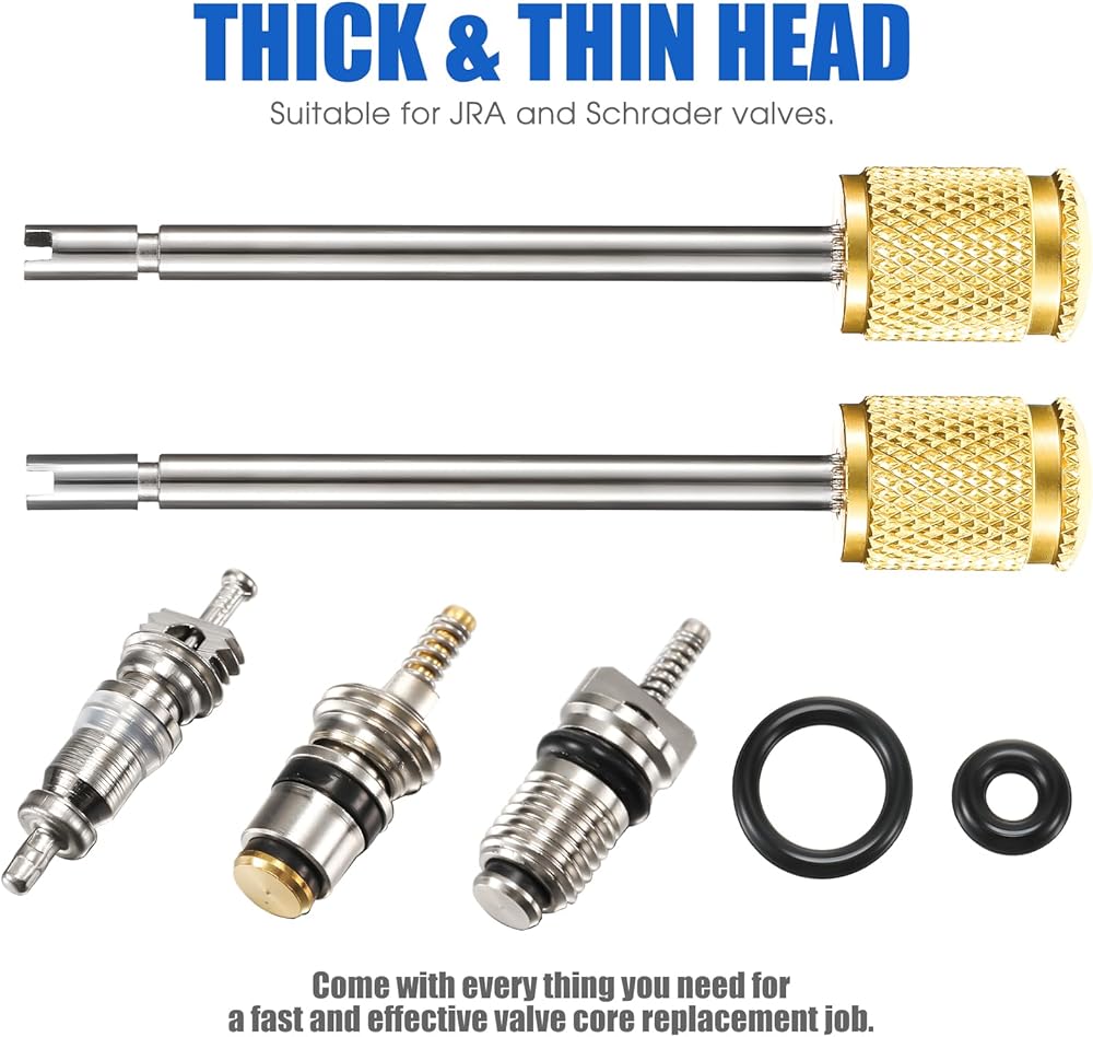 Widely applicable: the automotive air conditioner valve core remover and installer tool set is compatible with R134A and R1234YF automotive air conditioning systems, and is compatible with standard, JRA and Schrader valves; Quality valve air conditioning valve core are compatible with R12/ R134A/ R1234YF automotive and household air-conditioning accessories; Please check if the model is what you need
