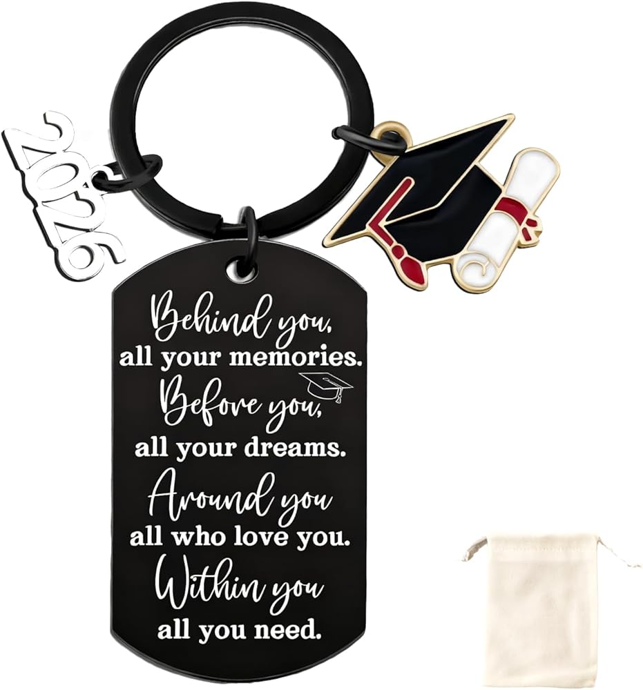 ✨[Meaningful Graduation Gift] - This keychain engraved with “Behind you all your memories,before you all your dreams, around you all who love you,within you all you need.”,It is a souvenir for the class of 2025 to bid farewell to the campus and move towards a new life, Containing deep blessings and good expectations for the graduates.