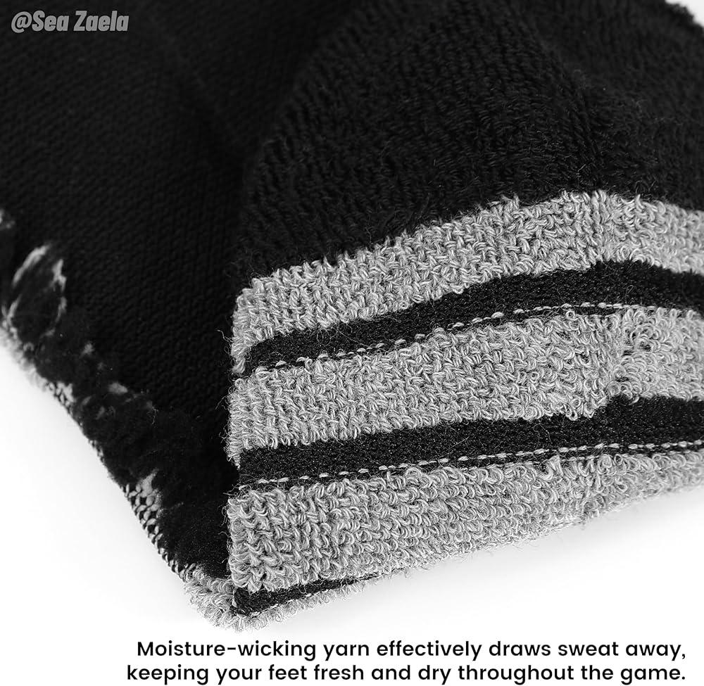 Moisture-Wicking Technology: Engineered with advanced moisture-wicking properties, these socks ensure sweat is quickly absorbed and evaporated, keeping your feet dry and fresh throughout the game.