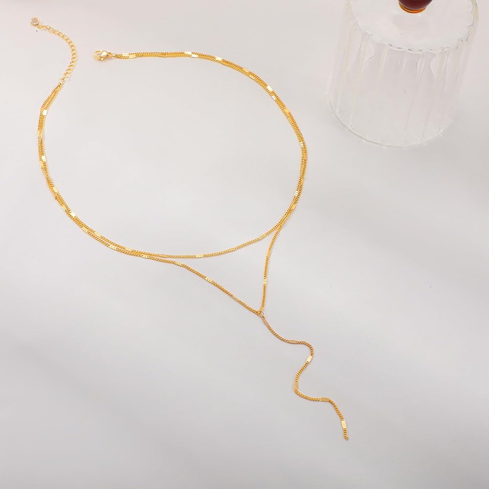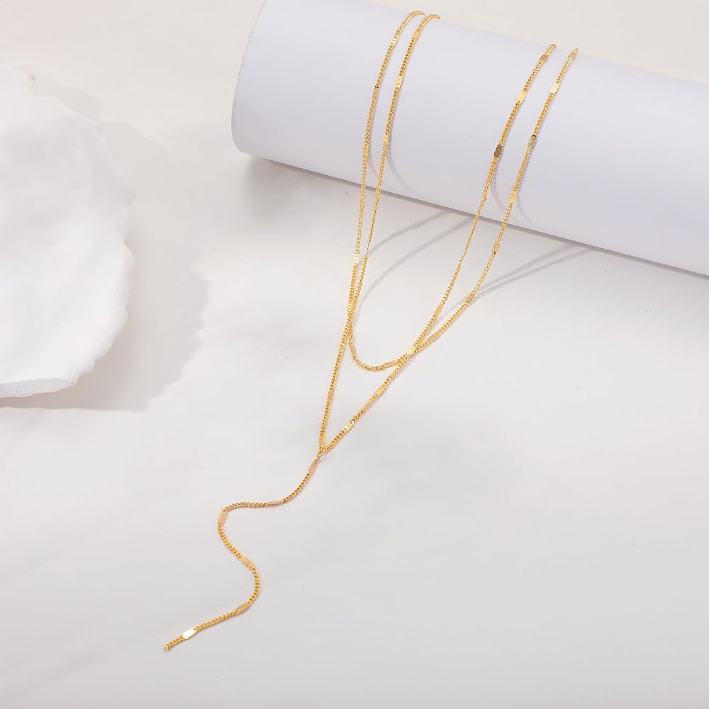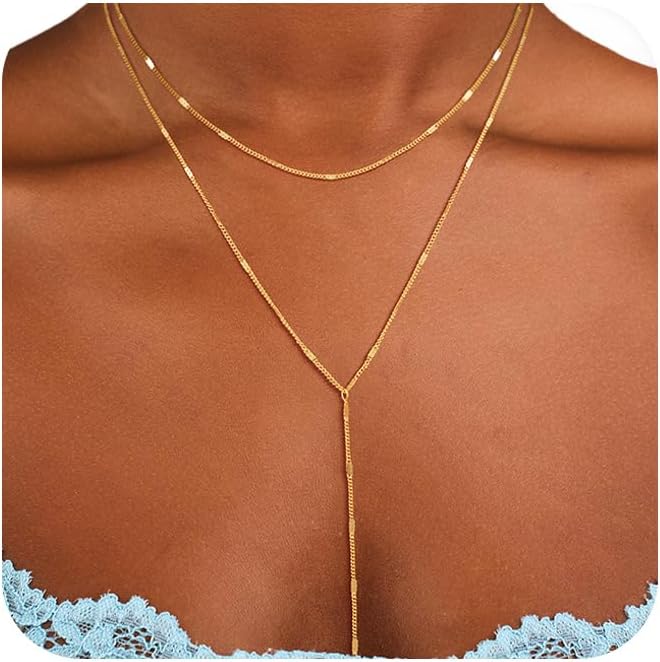 HIGH QUALITY MATERIALS: Our gold layered Y necklaces made of high quality material brass and 14K gold plated to ensure the chain keeps tarnish-free, nickel free, lead-free and hypoallergenic for a long time, suitable for all-day wear