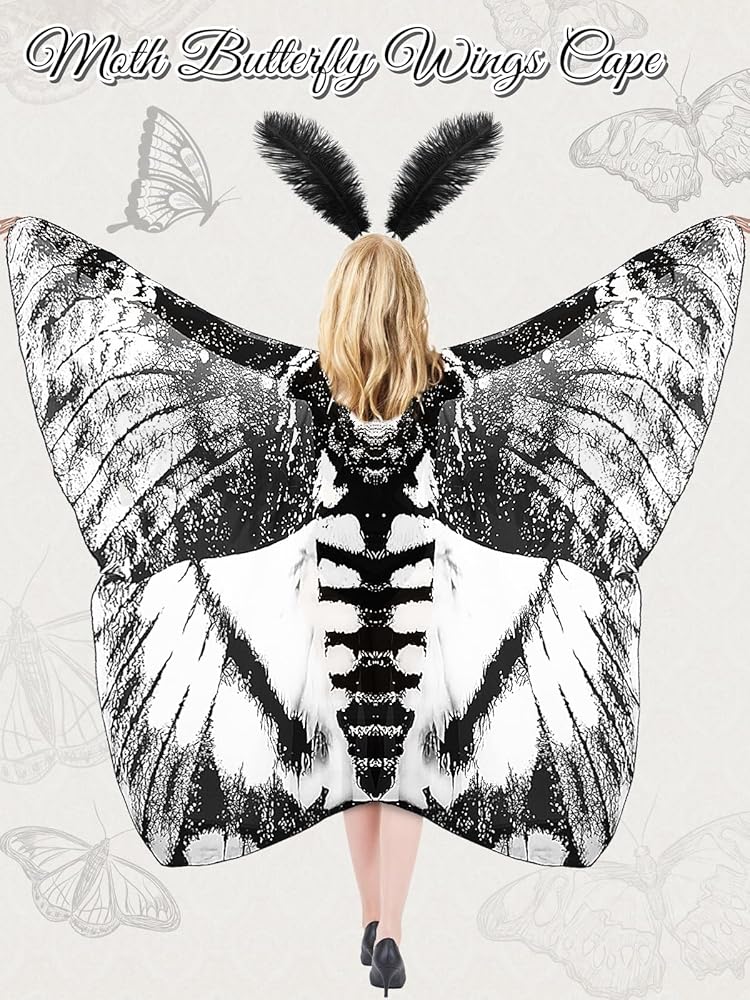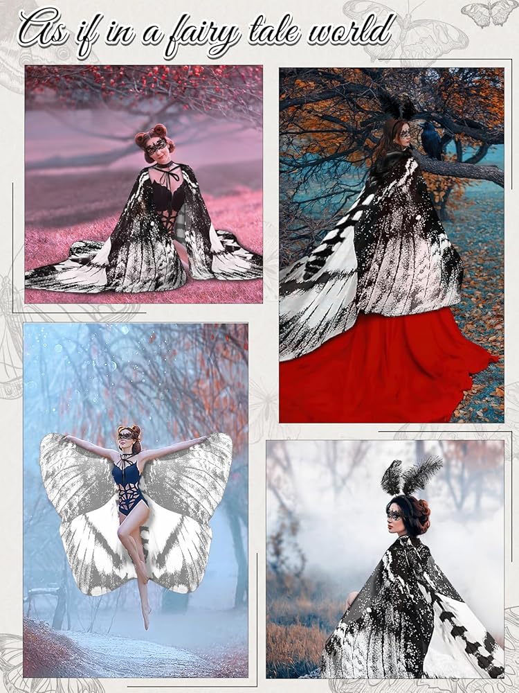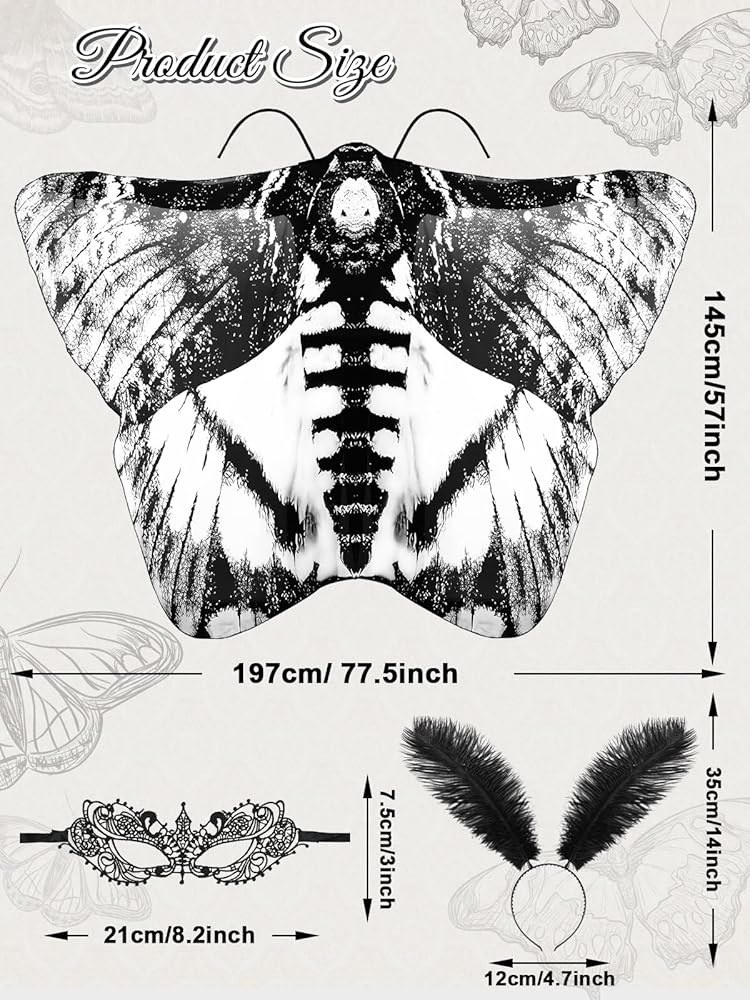 Widely Used: These moth wings costume are designed in the shape of moths, which are cute and interesting, and are suitable for Halloween, Christmas, Carnival, theme parties, masquerade parties, stage performances, photo shoots, parties and beach decorations. Moth costume is also a unique gift choice for mothers, lovers, friends and family, so that they can feel your mind and taste and become the focus at holiday parties