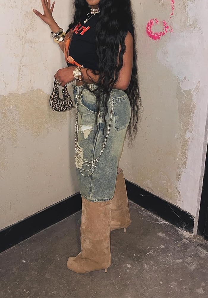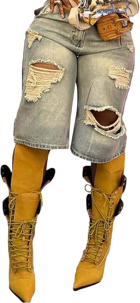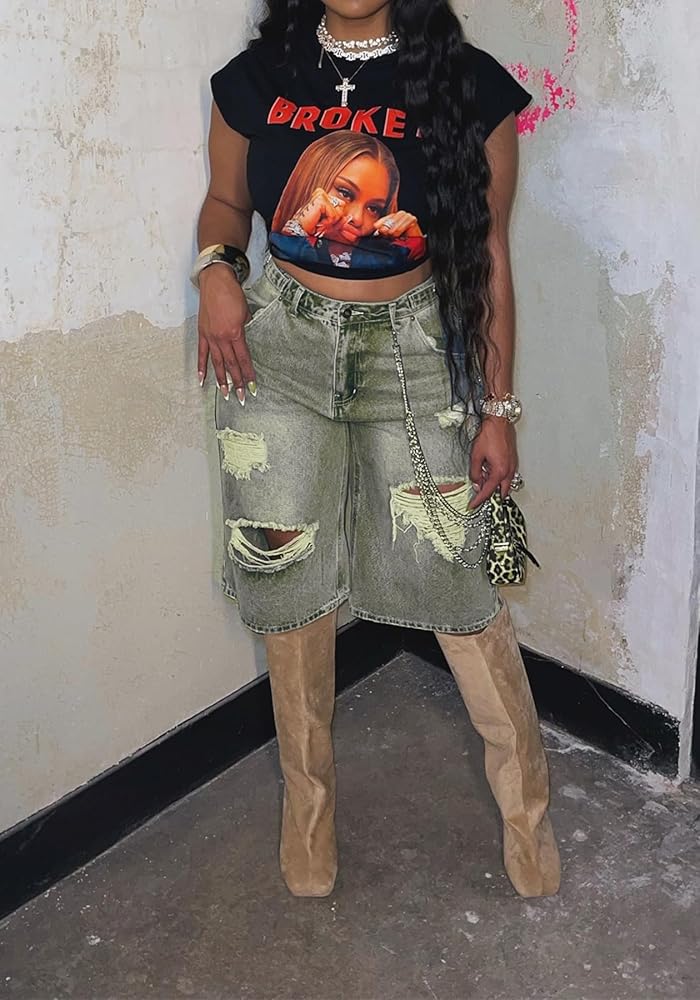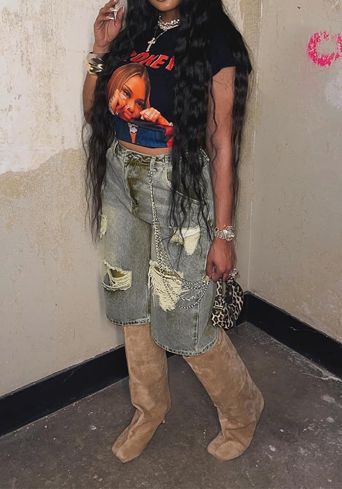 Y2K-Inspired Baggy Denim Shorts for Retro Vibes:Step into summer 2025 with these Y2K shorts, featuring a high-waisted, baggy fit and distressed ripped details for a vintage-cool look. The straight wide-leg silhouette and Bermuda length offer a relaxed yet trendy style, perfect for night outs, clubs, or casual parties in light blue denim.