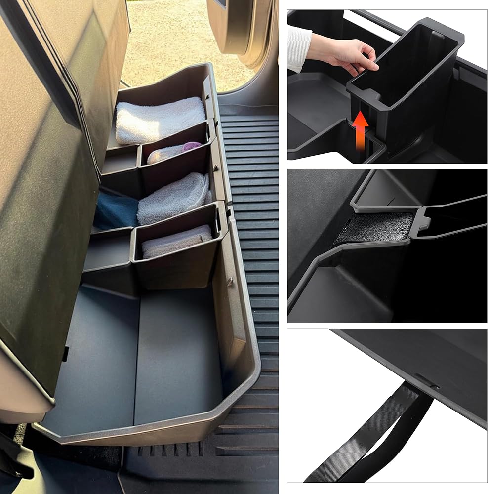 ·PERFECT FIT: This is a hidden rear under-seat organizer designed specifically for the Tesla Cybertruck 2024+, ensuring tight and secure placement and maximizing space.