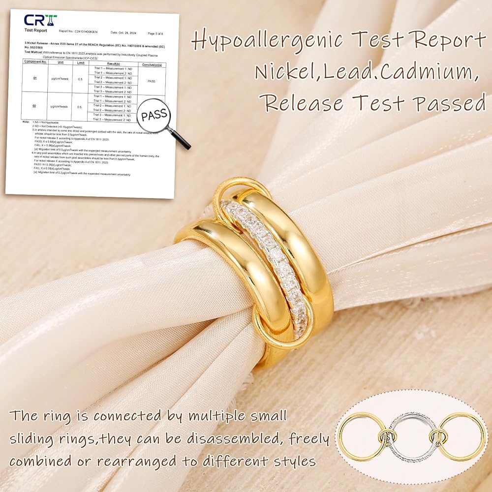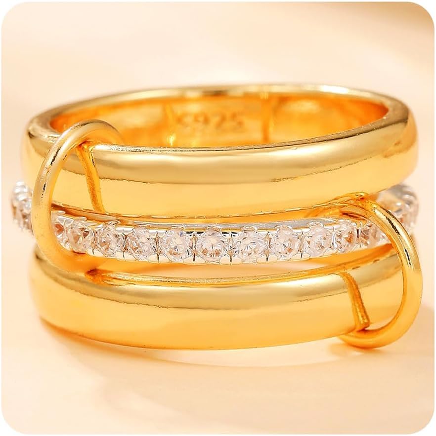 Stackable Rings for Women: This exquisite set of 14K gold-plated stackable rings features a unique multi-link connected design, can stacking or be split, combined or rearranged to create layered and fashion-forward look that stands out,and to embodies "the concept of one piece of jewelry, multiple possibilities".Perfect for everyday wear or special occasions, these stacking rings are a must-have for anyone who loves to express their personal style with grace and charm.