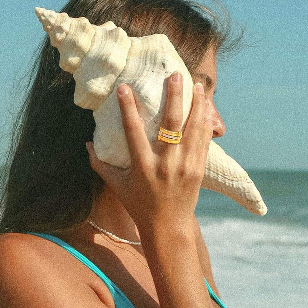 Dazzling Cubic Zirconia:Gold rings for women non tarnish in this set is beautifully adorned with high-quality cubic zirconia stones, meticulously set to catch the light,and sparkle with every movement.The brilliance of these stones adds a touch of glamour and sophistication, whether you're dressing up for a night out or adding a subtle shine to your everyday look, these gold ring are designed to complement your style effortlessly.