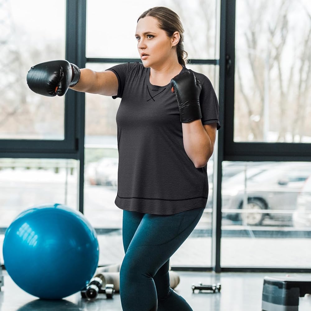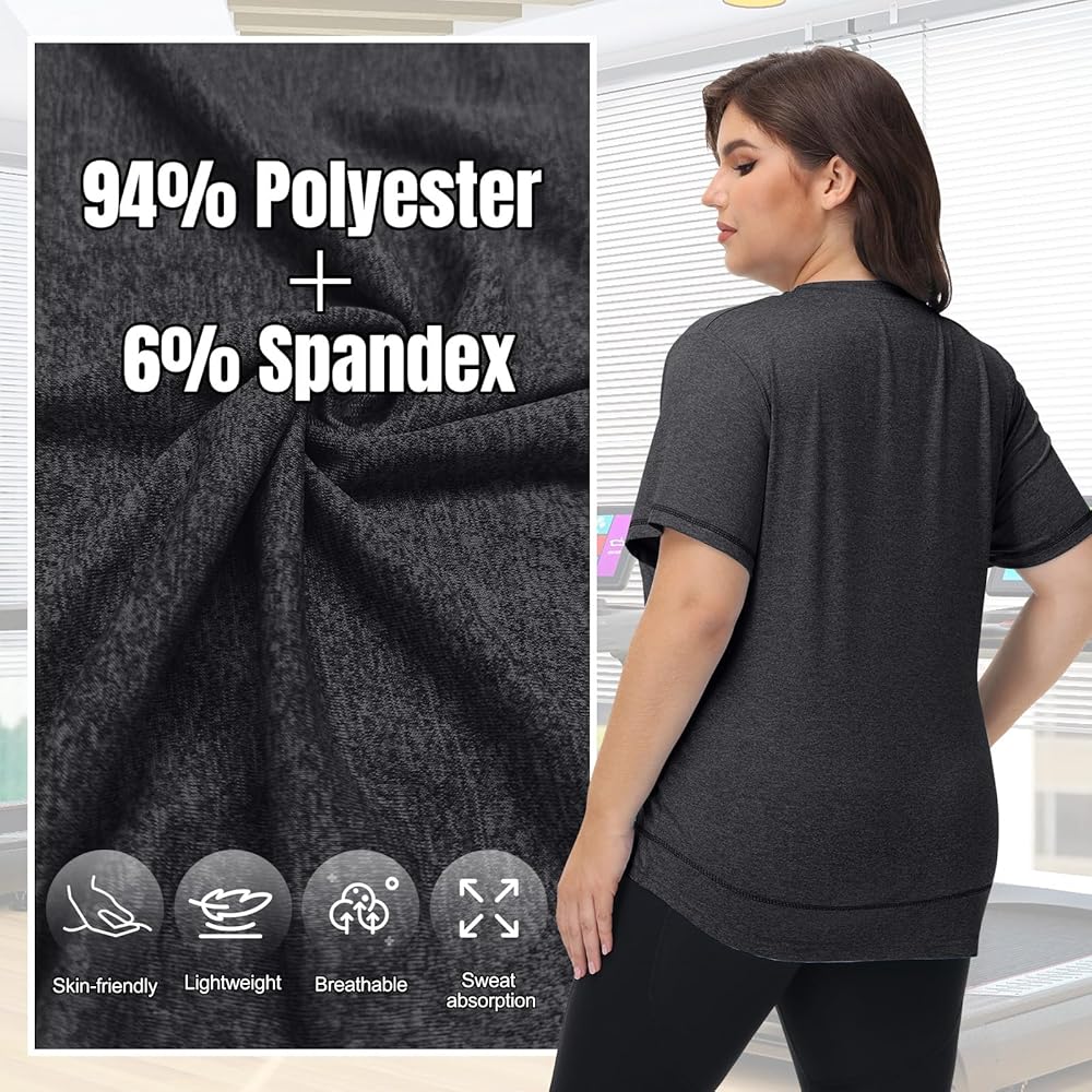 Soft and Breathable Fabric: women's plus size athletic tops are made of 94% polyester and 6% spandex, breathable, lightweight and soft, while also being moisture-wicking, quick-drying and cool to the touch, keeping you cool and comfortable during your yoga or fitness workouts