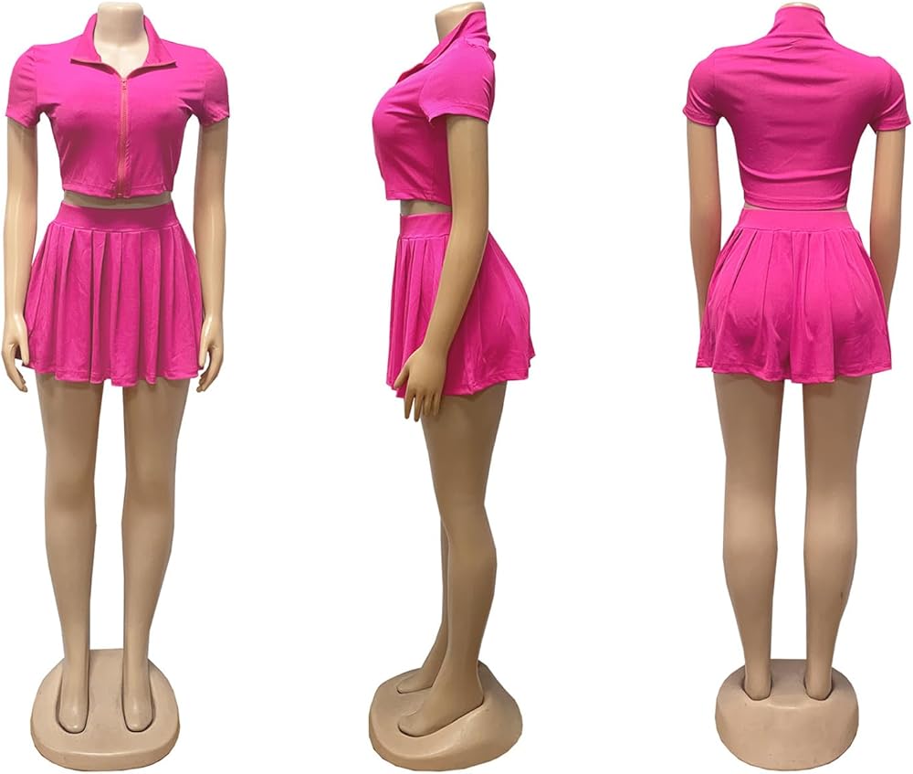 Features: Solid color sets for women,ribbe design,high waist pleated skirt and zip up jackets,skirt sets women 2 piece outfits,two piece sets for women going out,lounge sets for women,holiday outfits for women