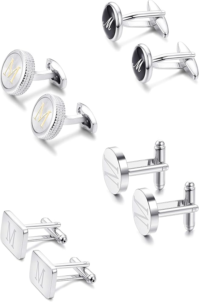 PACKAGE INCLUDE: Set of 4 pairs Letter Shirts Cufflinks, perfect for adding a personalized touch to any formal outfit. Each pair features unique designs that stand out and enhance your style