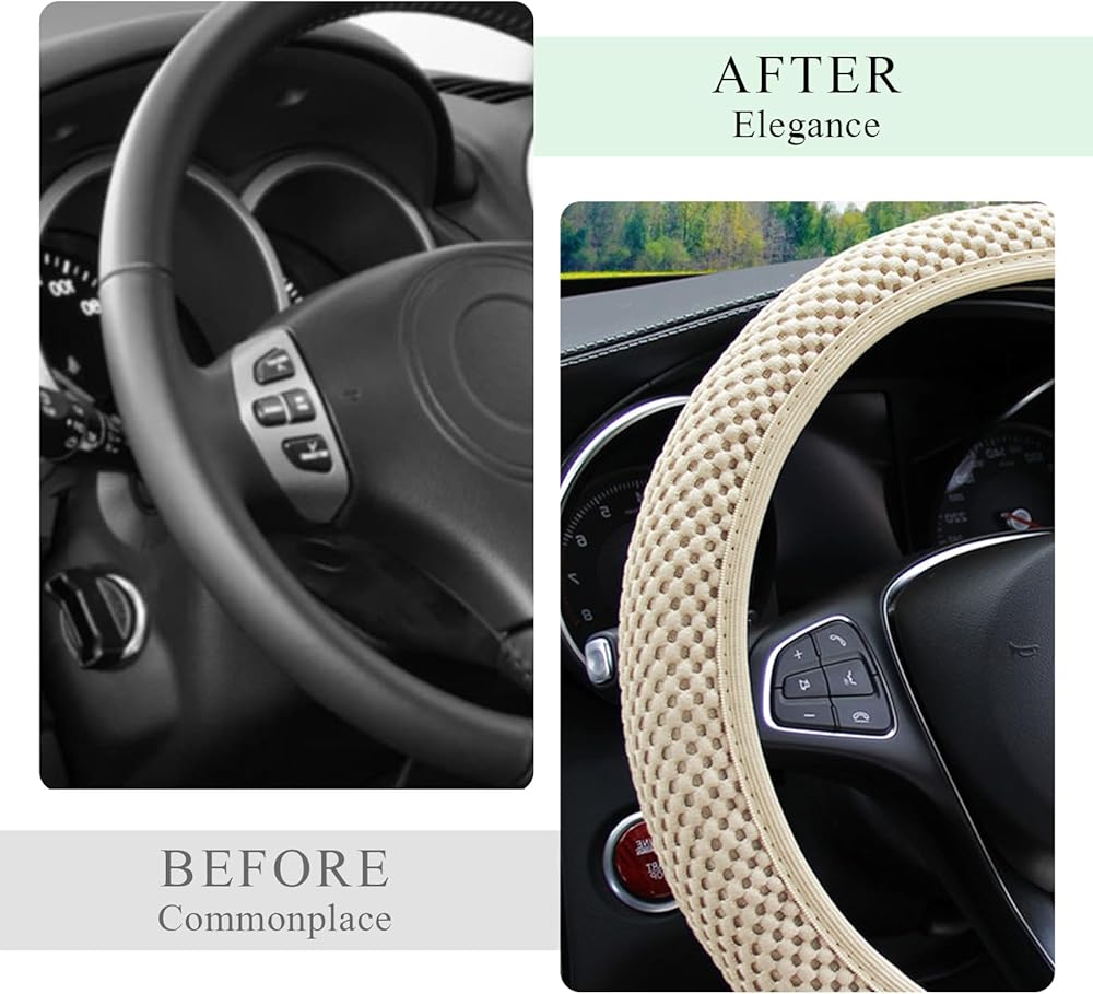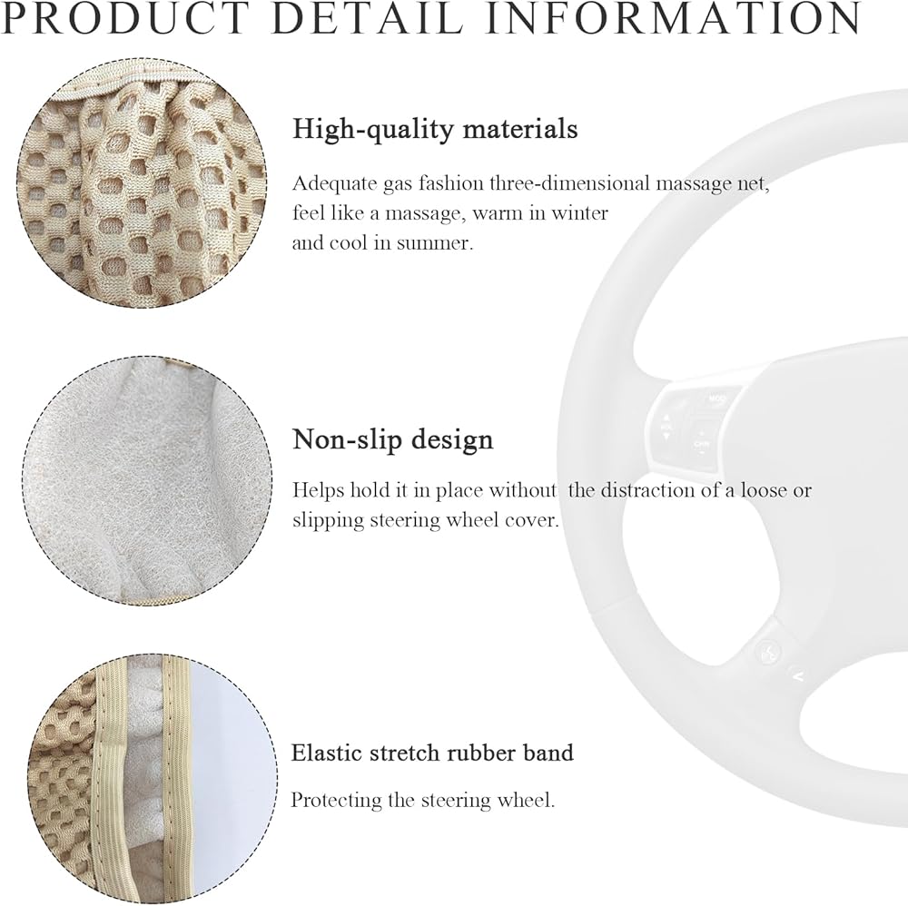 【Protective Function】: The elastic steering wheel cover provides a protective layer for your steering wheel, helping to prevent scratches, dirt, sweat and something else that may cause damage to your steering wheel. With this practical protector, you don't need to worry about your steering wheel anymore.