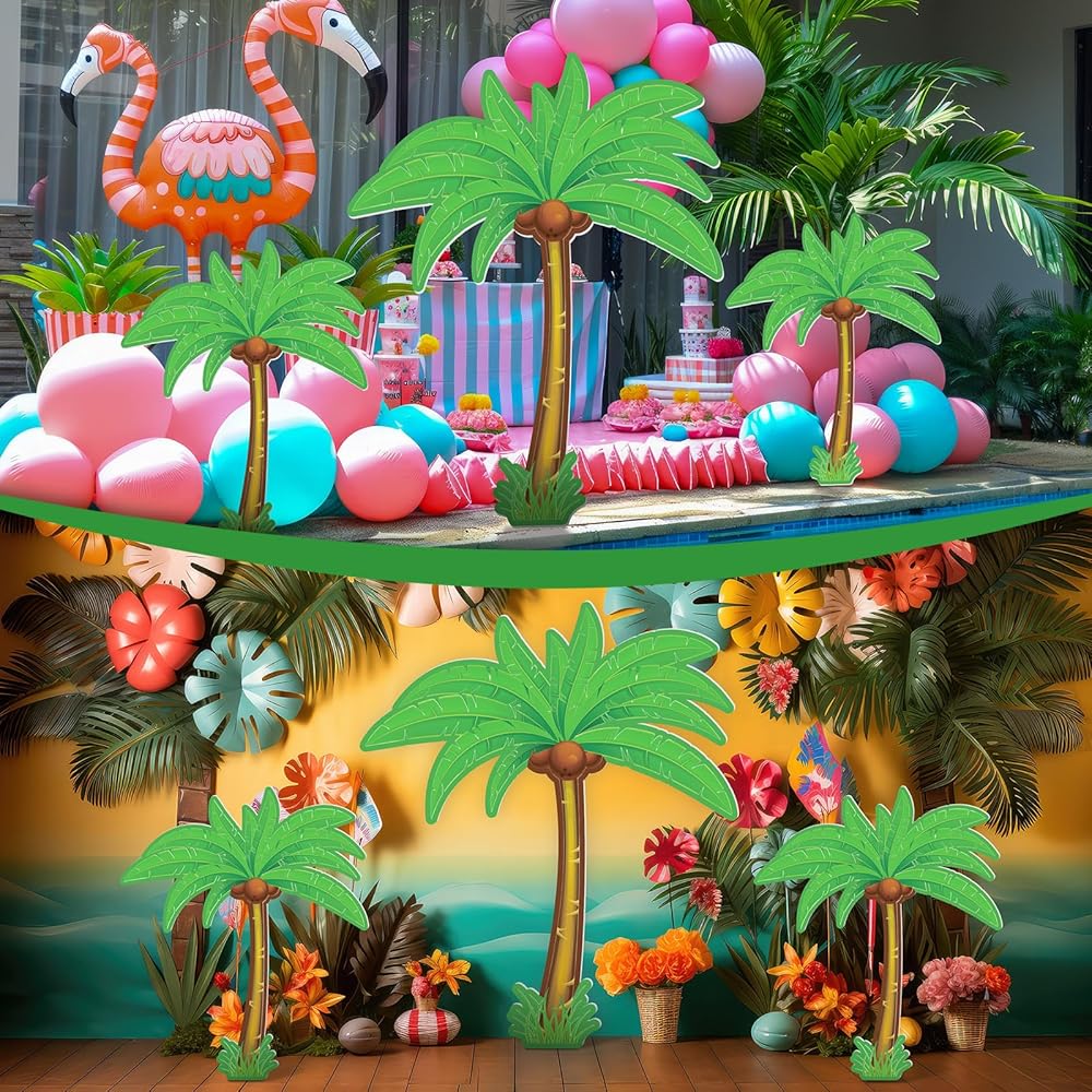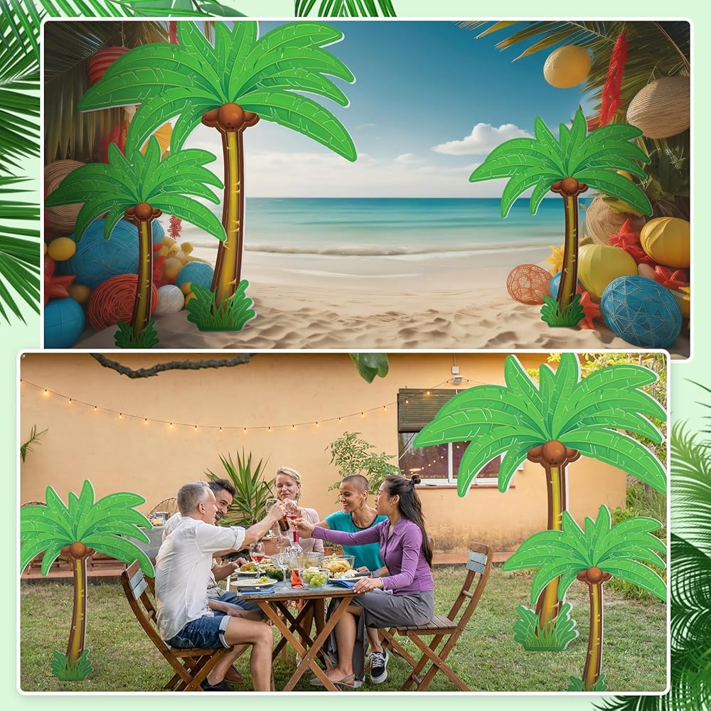 The vivid and beautiful palm tree stand-up set adopts classic tropical color matching, with bright and harmonious colors, making summer decoration more rich. Capture the essence of the tropics and bring the island vibes to your event in style, makes every event a tropical escape! Good for tropical activity, proms, luau theme party, summer party, and beyond, this versatile party palm trees decorations elevates any occasion.