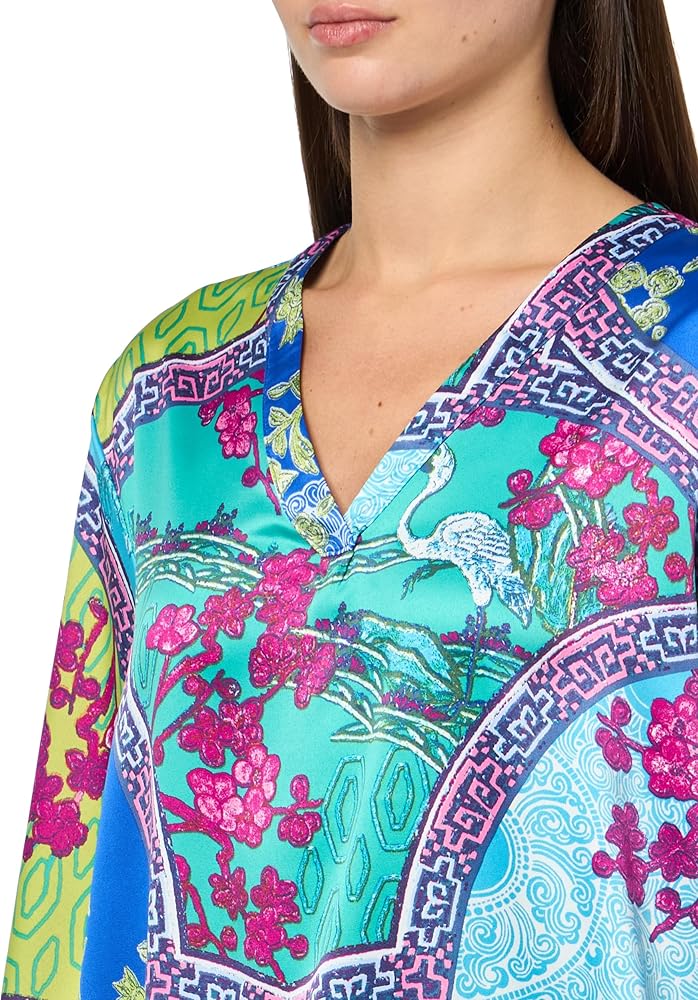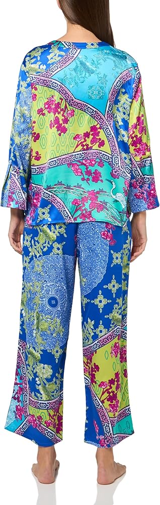 Vibrant, bold designs with a luxurious feel and finish. Top Length 24" Pant Inseam 26".Over the head entry .Made with spandex for added comfort and elasticity.Soft satin