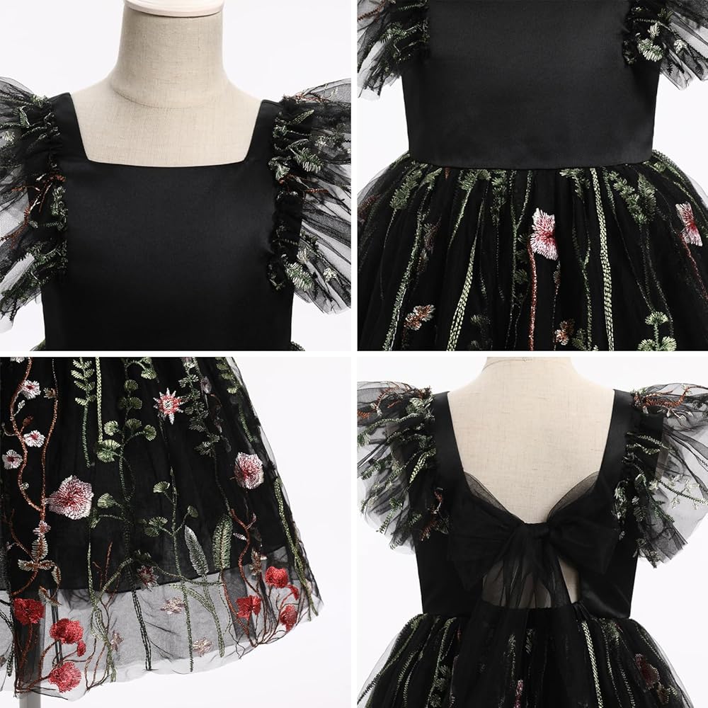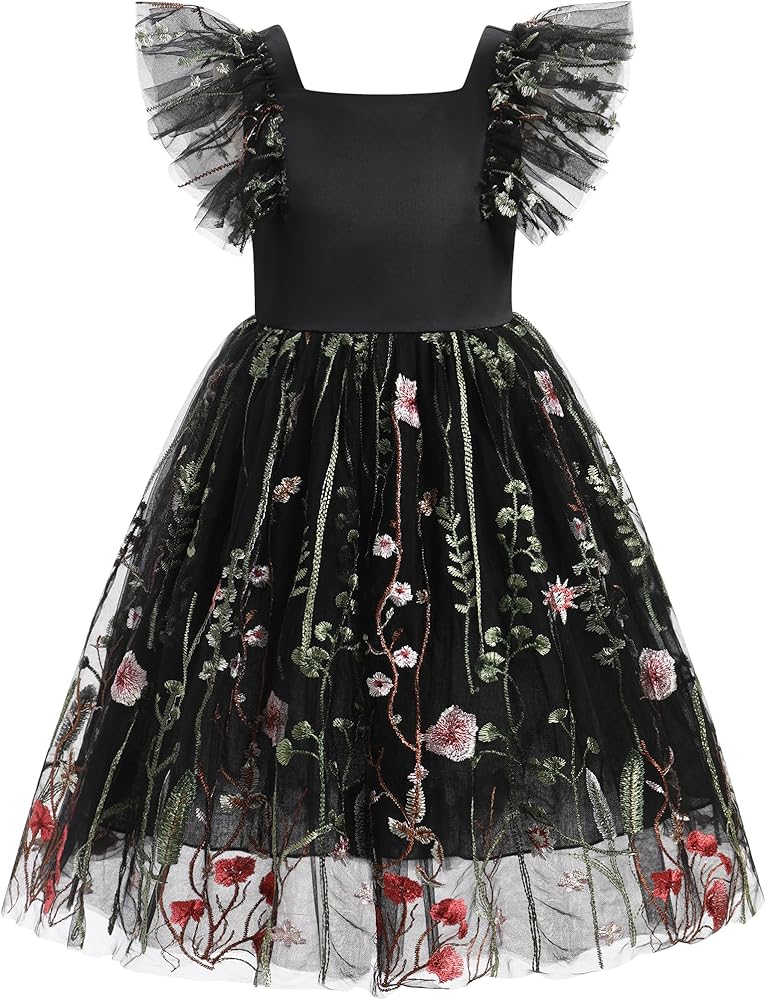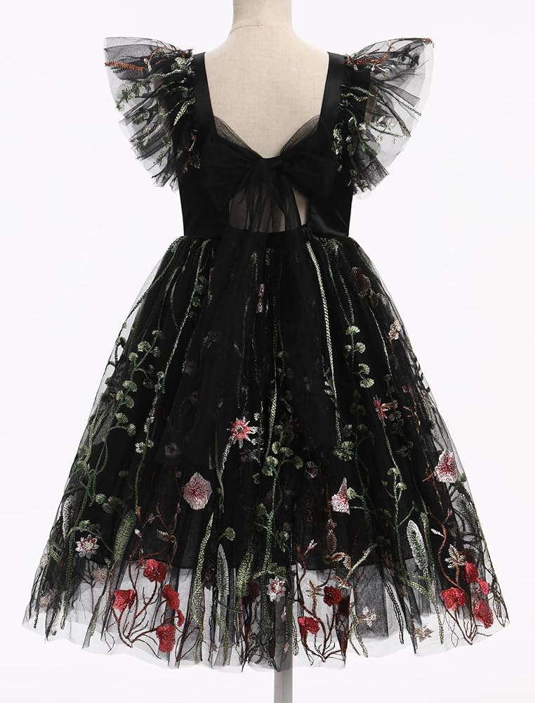 FLOWER GIRL WEDDING DRESS: Get back to nature in this gorgeous butterfly floral flower girl dress from IBAKOM! Made from a soft tulle fabric with darling pattern scattered throughout, this stunning toddler tea party sundress boasts a square neckline, short flutter sleeves, delicate self tie bow at back , and a elegant pageant prom dress with gathered detailing at waist.