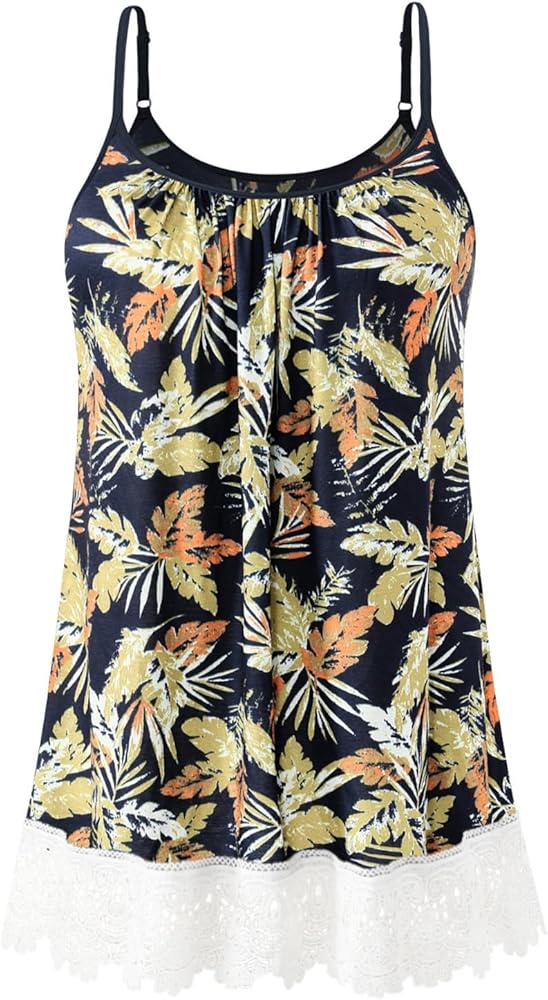 ❤Featured Design:The flowy tank top for women features crew neck,Lace trim brings you a sexy feeling.Built in bra is light support for breasts,upgraded adjustable strap helps to fit your body shape perfectly and gives you great freedom of movement.