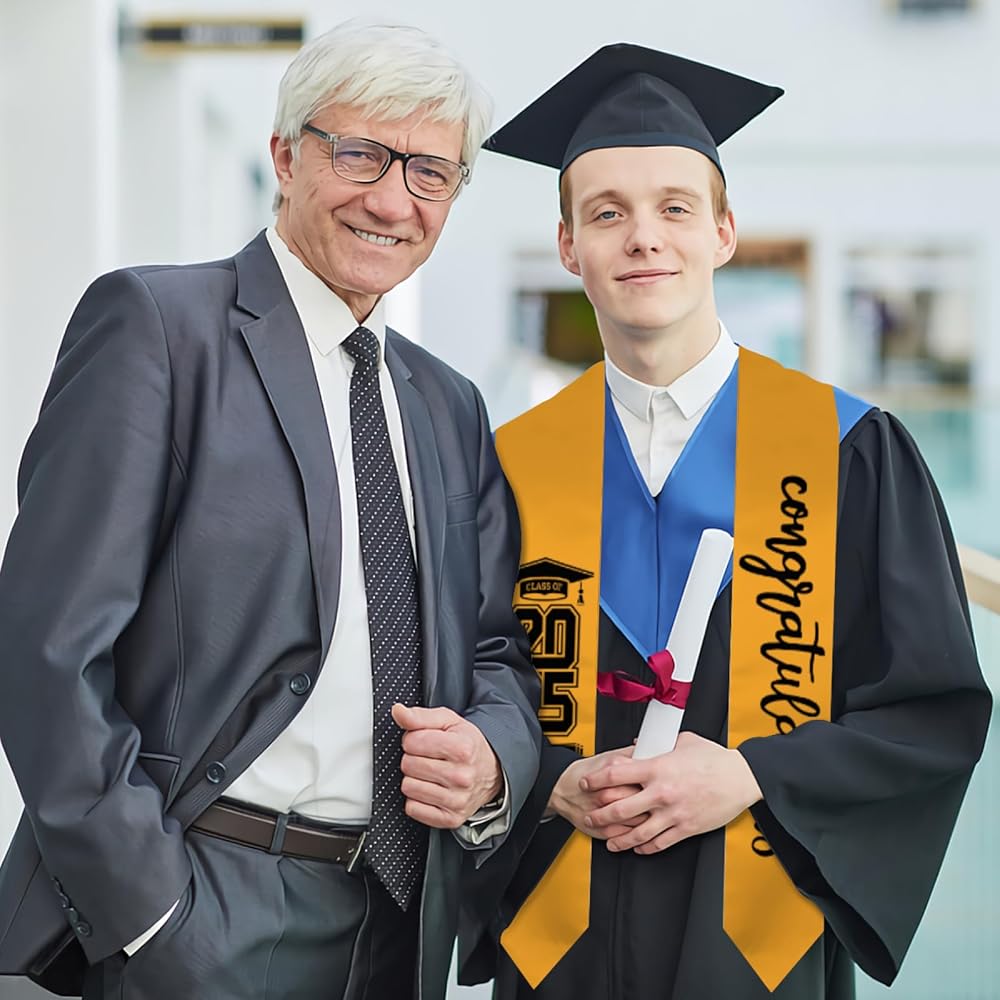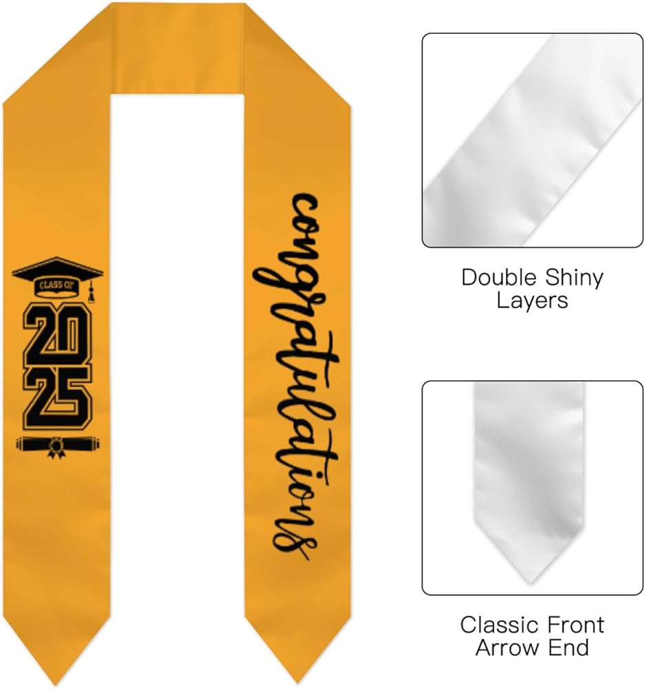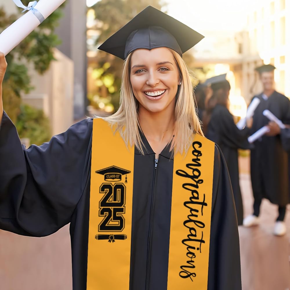 【2025 Style】- The graduation stole is printed with Class of 2024 text, decent and elegant, wearing it can show your achievements and bring you more charms.It's a perfect graduation gift or accessory during one of the greatest moments in a college students life.