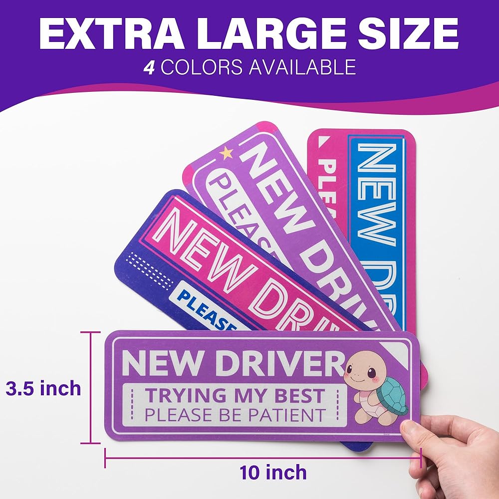 Enhance Road Safety: Our reflective "New Driver" magnets measure 10" x 3.5", designed to grab the attention of other drivers and clearly indicate your novice status for improved safety.