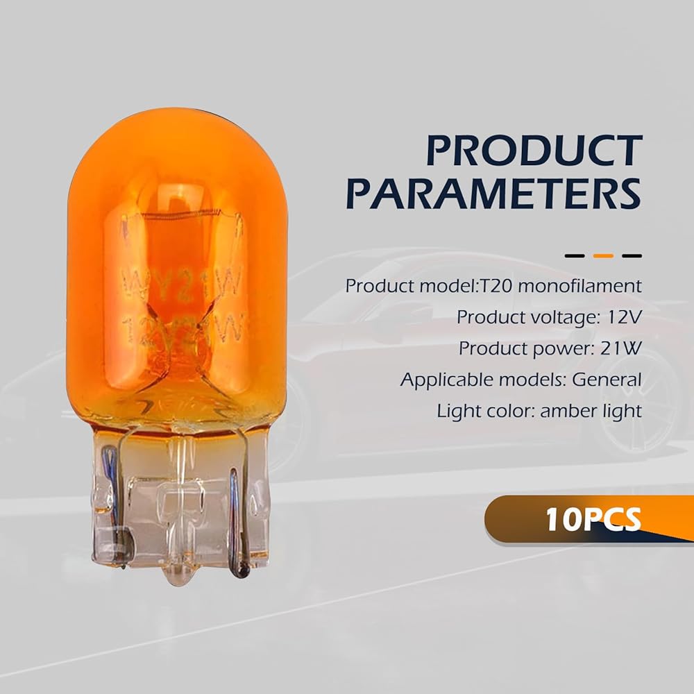 Downhill 10 PCS 7443 Bulb, 7443 Turn Signal Bulbs, T20 12V/21W Versatile Miniature Brake Lights/Reversing lights/Taillight Bulbs Lighting Replacement Accessories, for Most Cars Trucks SUVs (Amber)