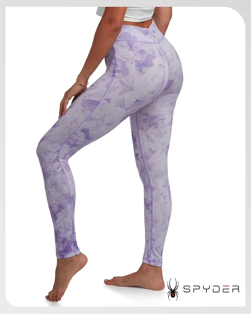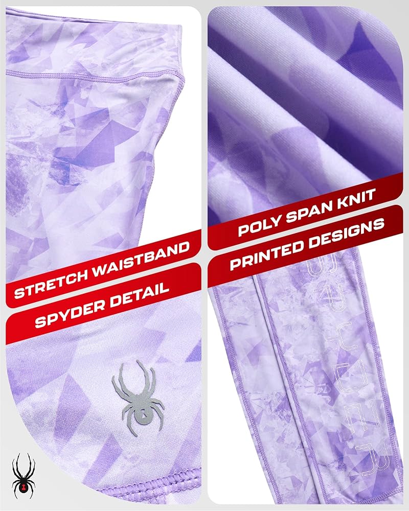 Officially Licensed Spyder: Poly Span Knit UPF 50 Sun Protection, High-Waist Fit Printed Leggings for Women ; Products built with over 40 years of performance research in the science of speed