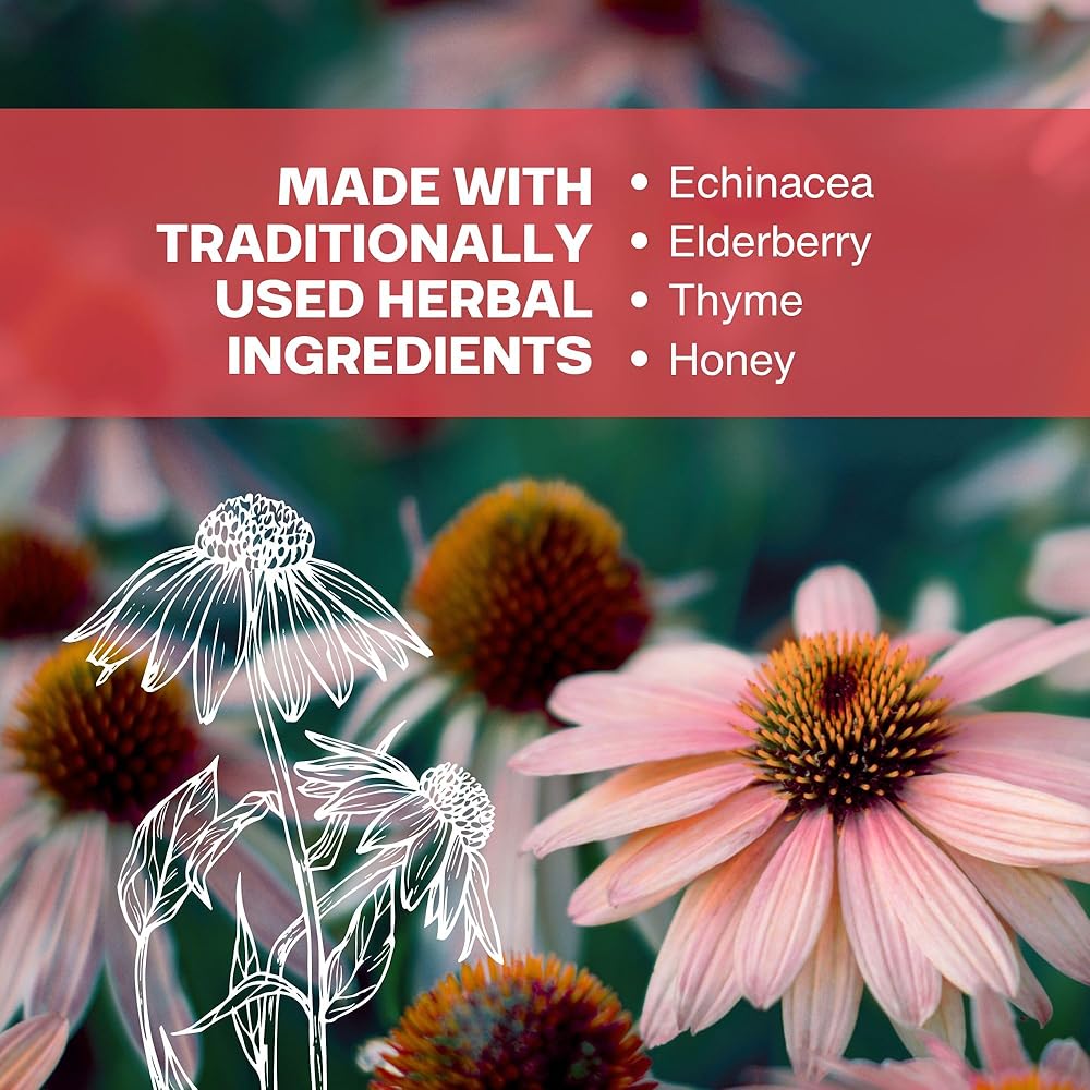Our toddler cough medicine is made with a blend of honey, elderberry, thyme and echinacea which combines immune support and encourages relief of common symptoms associated with seasonal irritants and bugs