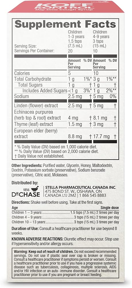 Koff' Kontrol's honey sweetened cough syrup is a dark amber liquid known for its cough-calming properties and encourages kids sore throat relief
