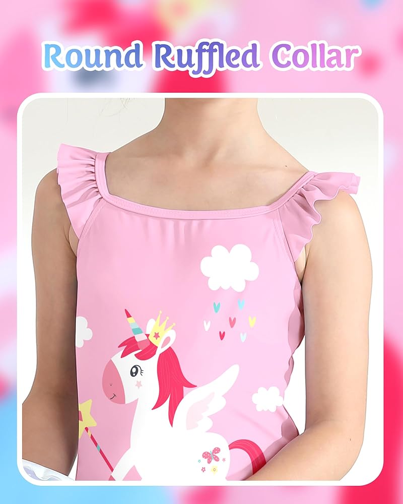 Cute Ruffles Design: This baby girls one piece swimsuit is designed with the cutest colors and patterns, such as unicorn, mermaid, rainbow, butterfly and more. The ruffle shoulder strap design adds a trendy touch, make your baby more sweet on the beach.