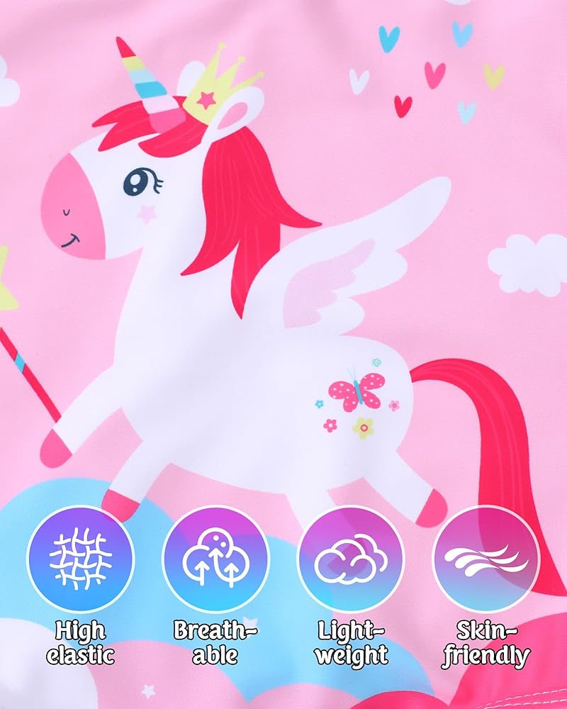 Comfortable Coverage: This girls one piece bathing suit has a modest cut that provides adequate coverage and comfort, making them easy to wear and remove for toddlers. Lightweight and breathable, won't weigh down your child in the water.