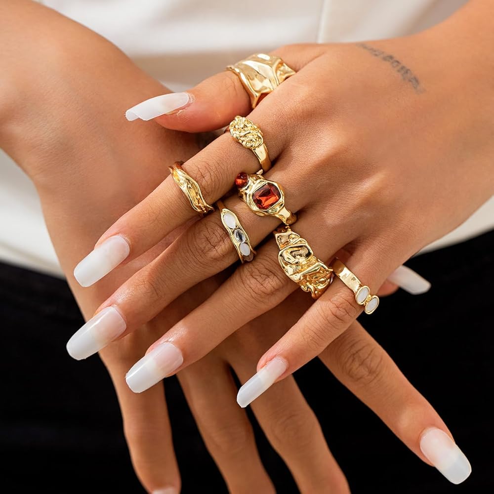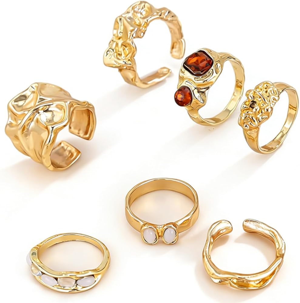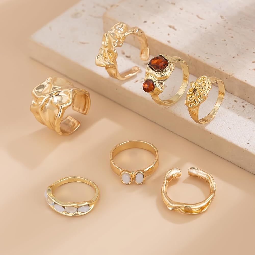 VERSATILE DESIGN: Set includes multiple chunky statement rings featuring irregular shapes and dainty crystal gemstone accents, perfect for mixing and matching