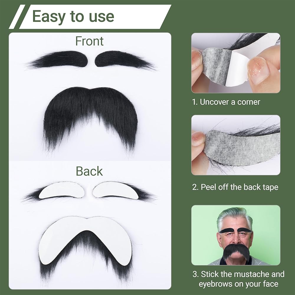 Easy to Apply and Remove: With double-sided adhesive, it's simple to put on and take off the beard and eyebrows. Spend less time on makeup and more time enjoying your event