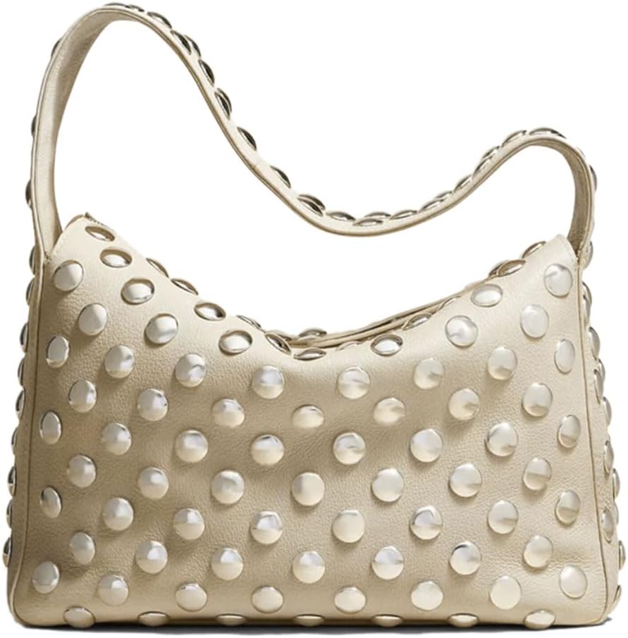Fashion Studded Purse Design: The rivets of this studded bag are hand-nailed into the leather surface, which is more solid and not easy to fall off. It adopts the overall 90s style, which is suitable for you who pursue fashion and retro style. 90s small shoulder purses for women, leather tote bags for women emo accessories