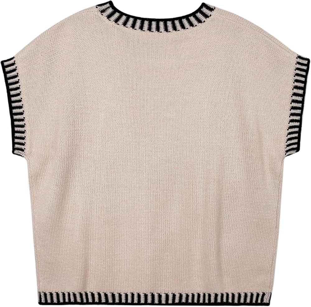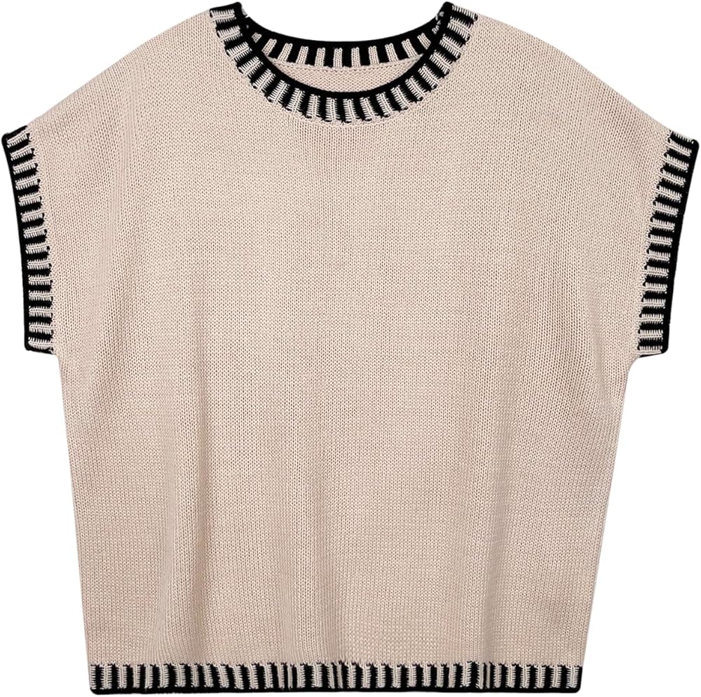 Design Features: Features a minimalist yet chic design with contrast-color edges, a round crewneck, and cap sleeves. Its lightweight knit structure adds to its breezy charm.