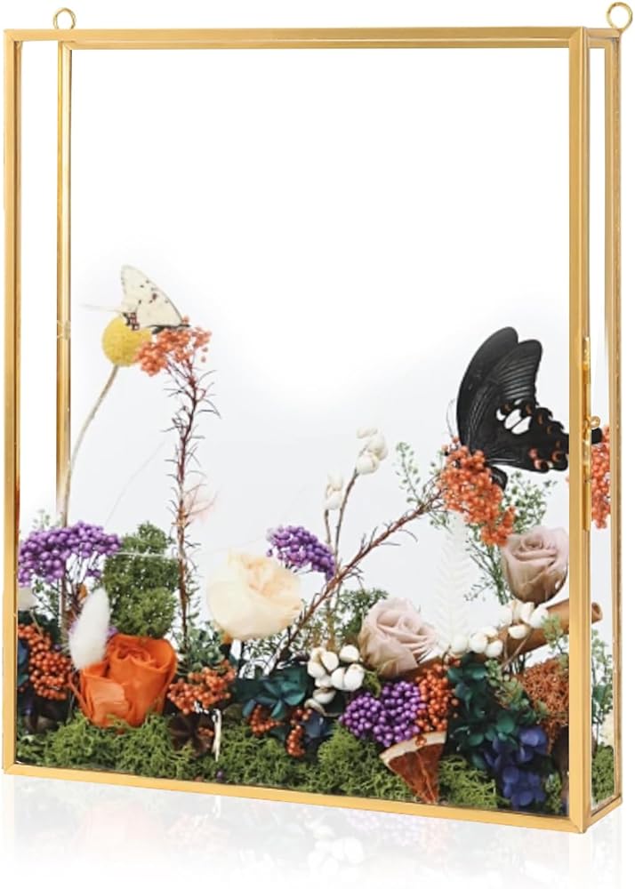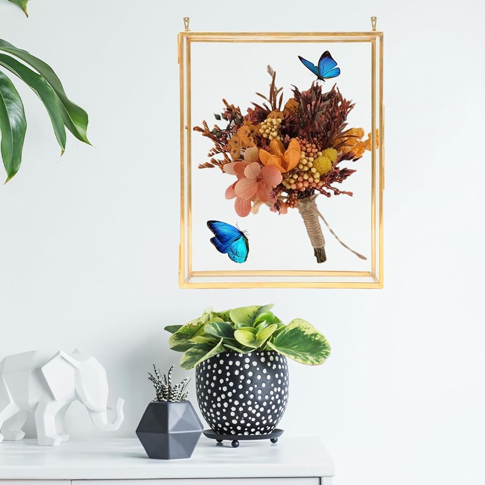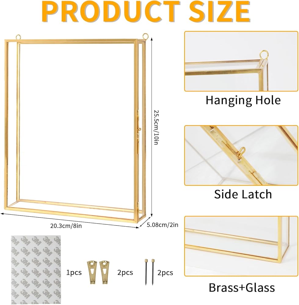 Vintage Design: This shadow box is made of high-quality glass and brass, with exquisite craftsmanship, smooth surface, sturdy and durable. Retro and elegant appearance, perfect for protecting and clearly displaying your precious memories.