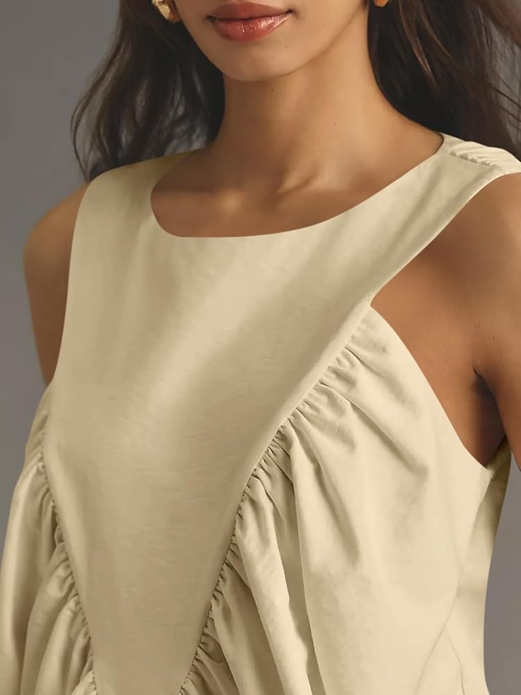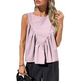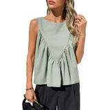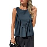 Feature: This elevated basic features shirred detailing in v shape, a swing silhouette, crew neck, flowy hem, sleeveless peplum blouse shirt for women, perfect for dressing up or down.