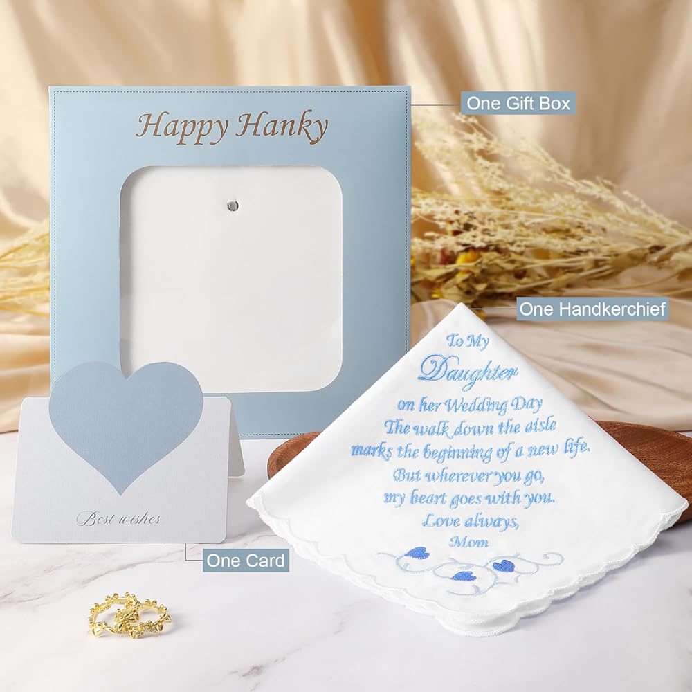 HEARTFELT WEDDING GIFTS for BRIDE/GROOM -Our wedding handkerchief is an ideal gift for the bride and groom. Whether it's a heartfelt gesture from a mother to her daughter on her big day, a token of love from parents to their son, or a special present from a close friend like a bridesmaid or maid of honor to the bride, this handkerchief serves as a meaningful reminder of your blessings for your loved ones. Express your love and make them feel truly cherished on this momentous occasion