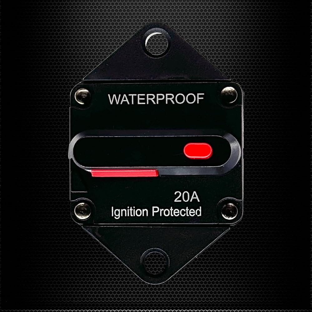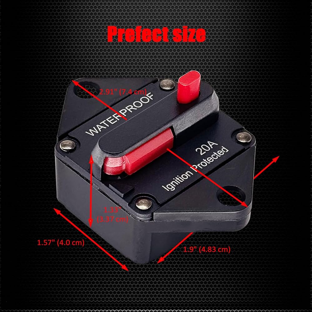 Ampper DC 12V-48V waterproof thermal circuit breaker fuse with manual reset / On-Off for boat trolling motor auto audio solar and more.