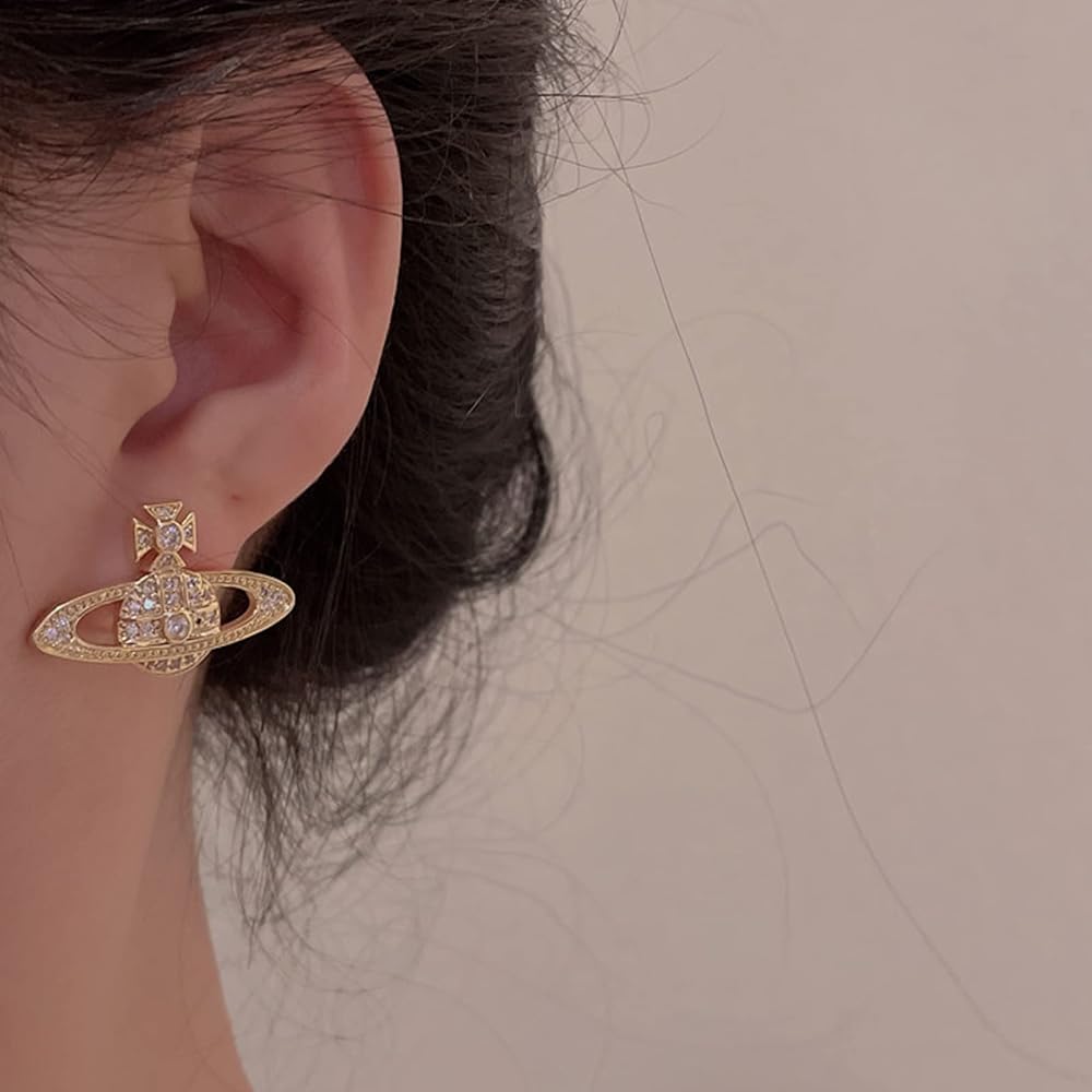 Design: Dreamy saturn stud earrings design are inspired from beautiful planet, it is a symbol of undying love. with cubic zirconia emblishment, wear the saturn planet stud earrings can make you more eye-catching and attractive.