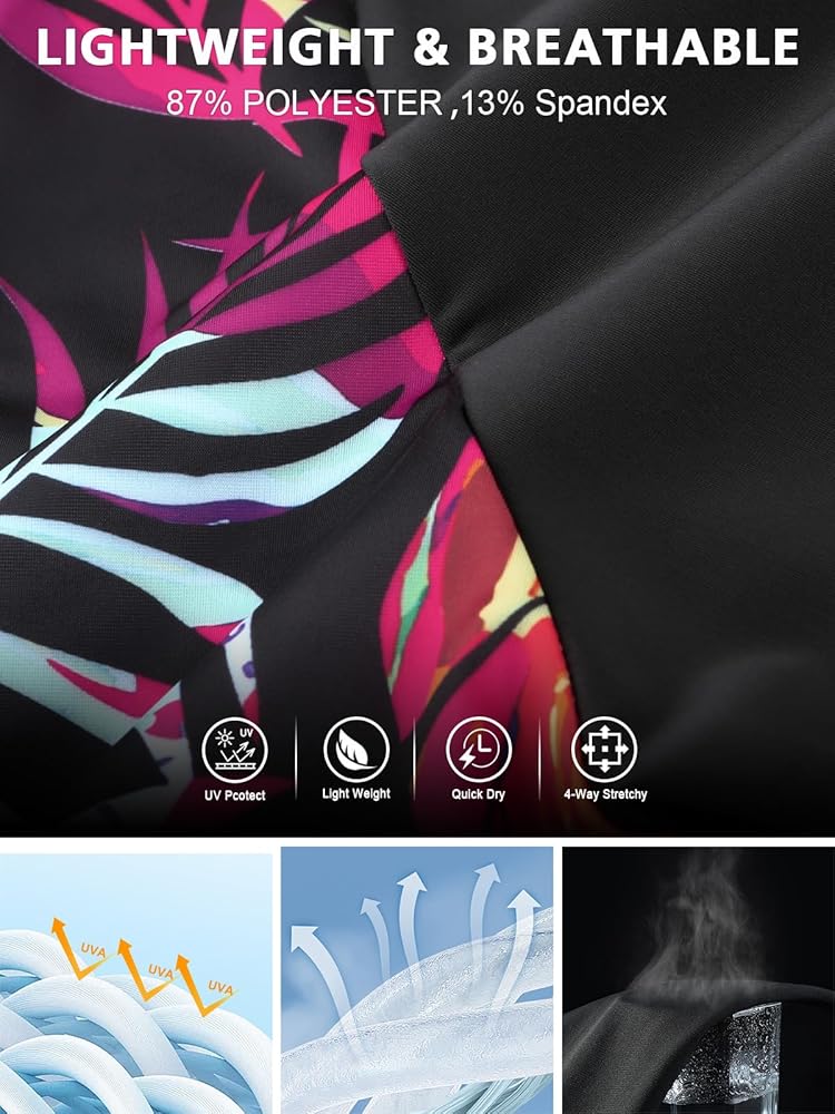 UPF 50+ Sun Protection - UPF 50+ UV block fabrics offers you necessary body coverage and protect you from the damage of UV without applying sunscreen all over your body (UPF 50+ means they can blocks 98% of UV rays). Keep you away from skin cancer and sunburn.