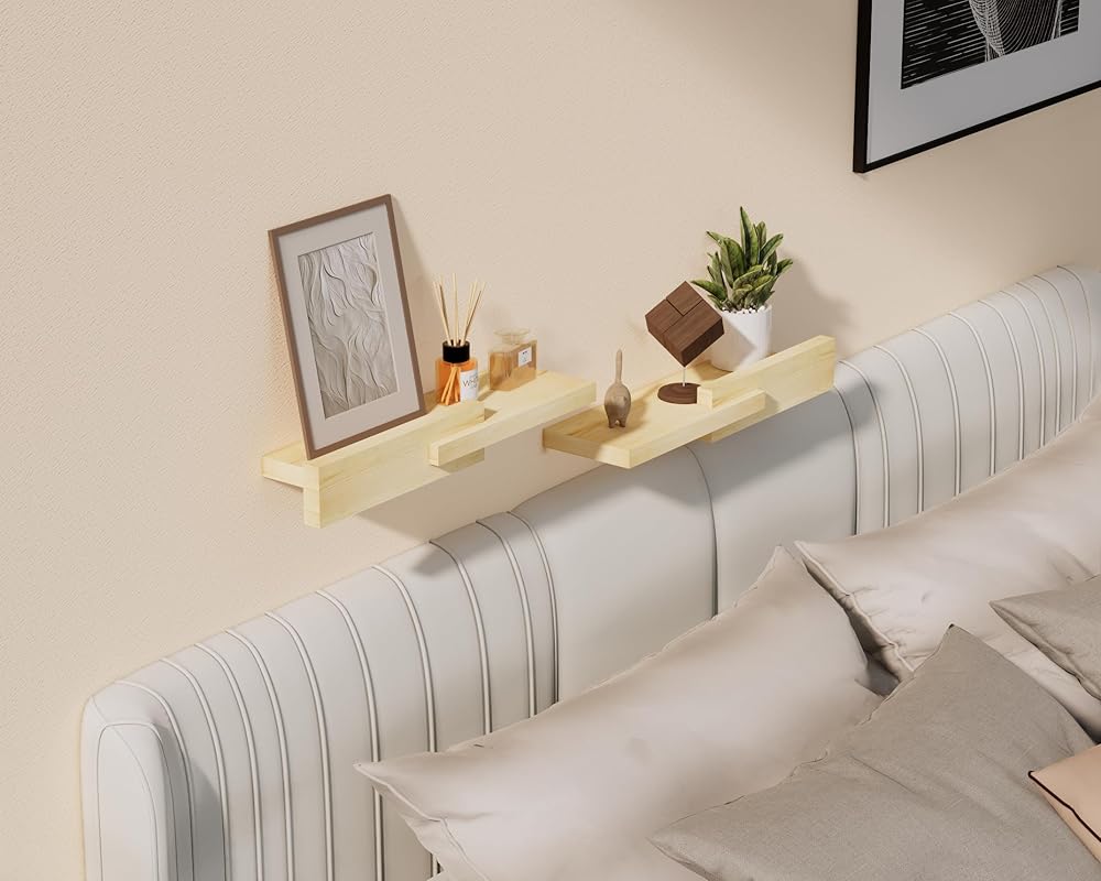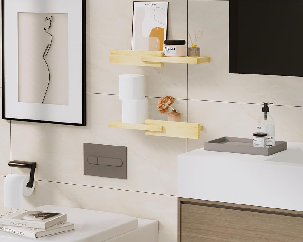 【Unique Modern room decor】Our solid hardwood floating shelf features a wooden joint created between a foreground piece interlocking the shelf. These shelves are reversible to showcase your eye-catching wall décor. If you don't like ordinary floating shelves, our shelves will give you unexpected surprises! You can also attach them mounted above the toilet!