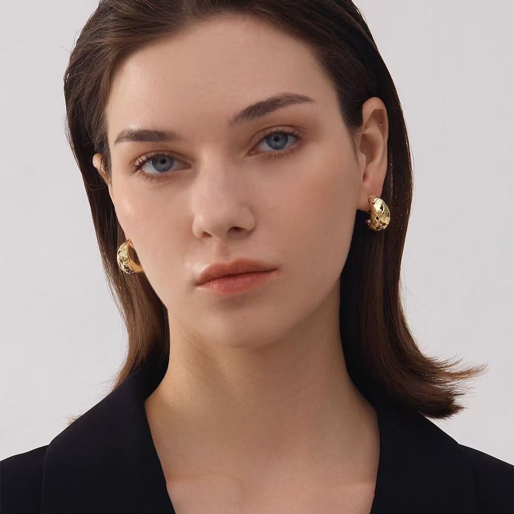 Occasion: Classic chunky gold hoop earrings, A must-have for 2025 minimalist chic style, Whether you are on vacation, at work, or on a date from casual to evening dress, it means relaxed, comfortable, exquisit, looking forward to meeting your ear.