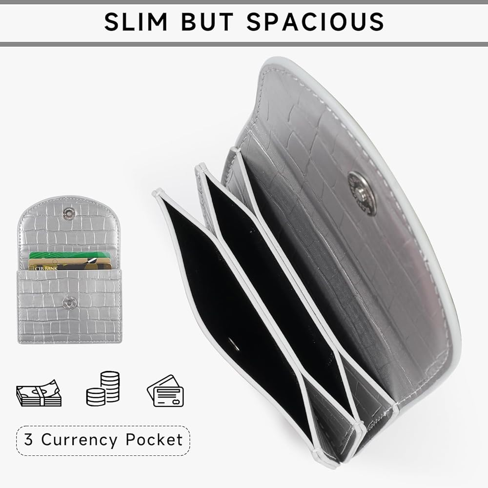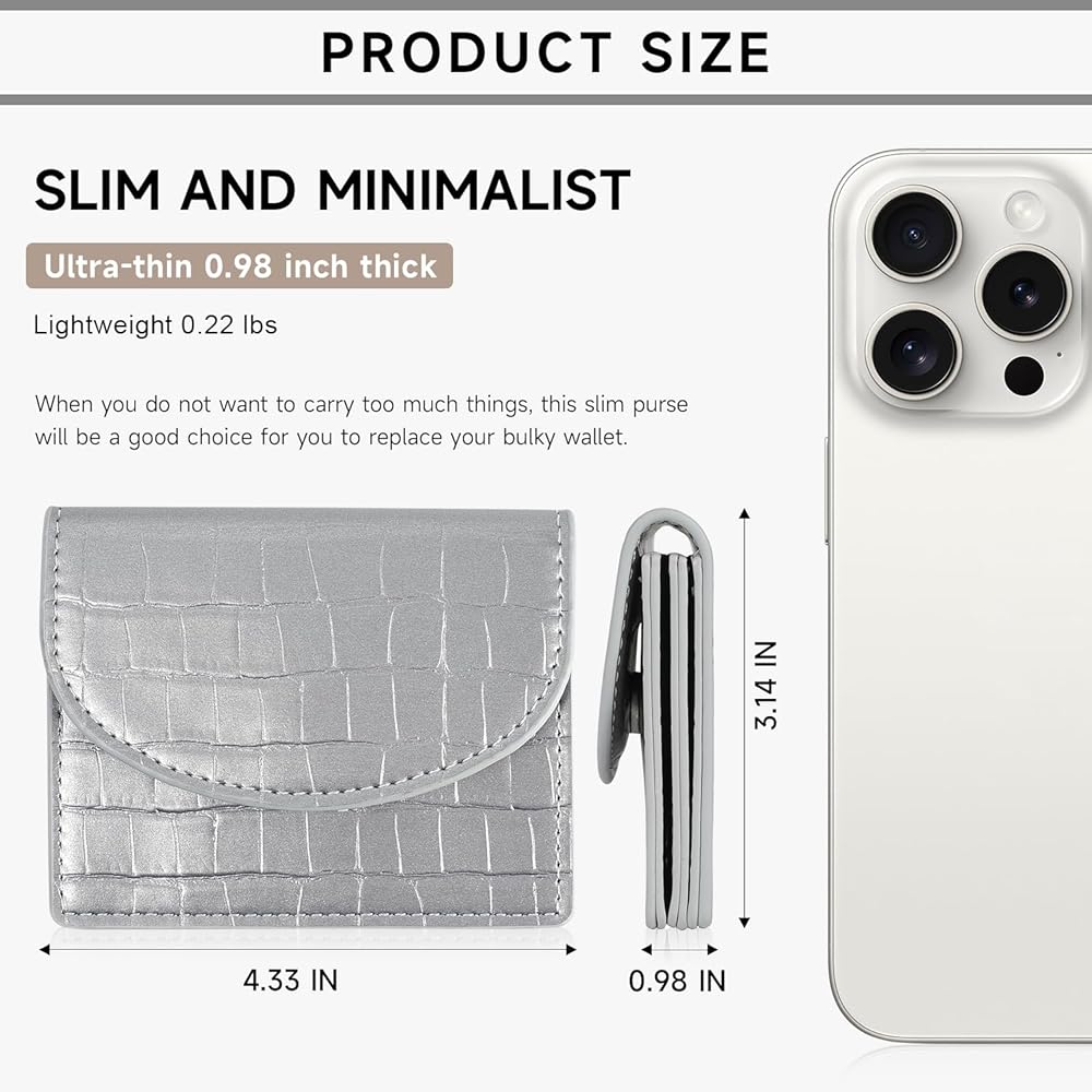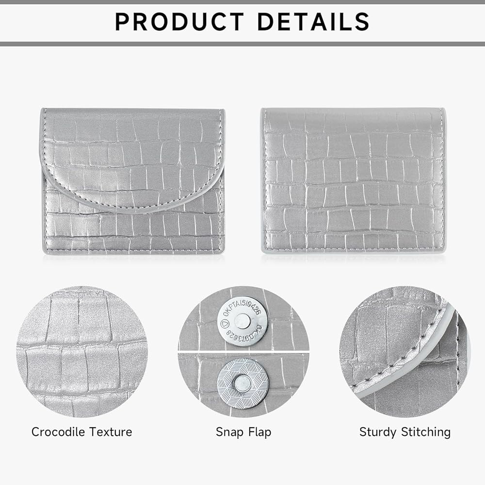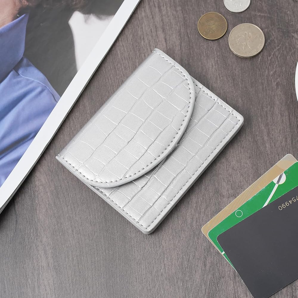 APHISON Credit Card Holder, Small Card Wallet, Slim Cute Card Holder Wallet, Coin Pocket Business Card Case with Clasp for Women (Silver)