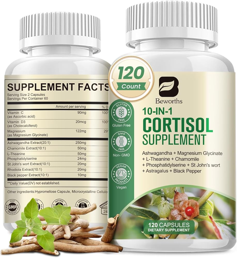 【Vegan, Non-GMO & High-Quality Formulation】At B BEWORTHS, we combine scientific innovation with traditional Eastern medicine to create vegan, non-GMO supplements that align with your body's natural processes; Our cortisol balance capsules are gluten-free, soy-free, keto-friendly, and made without chemicals, alcohols, preservatives, or additives—making them suitable for a variety of dietary preferences and lifestyles
