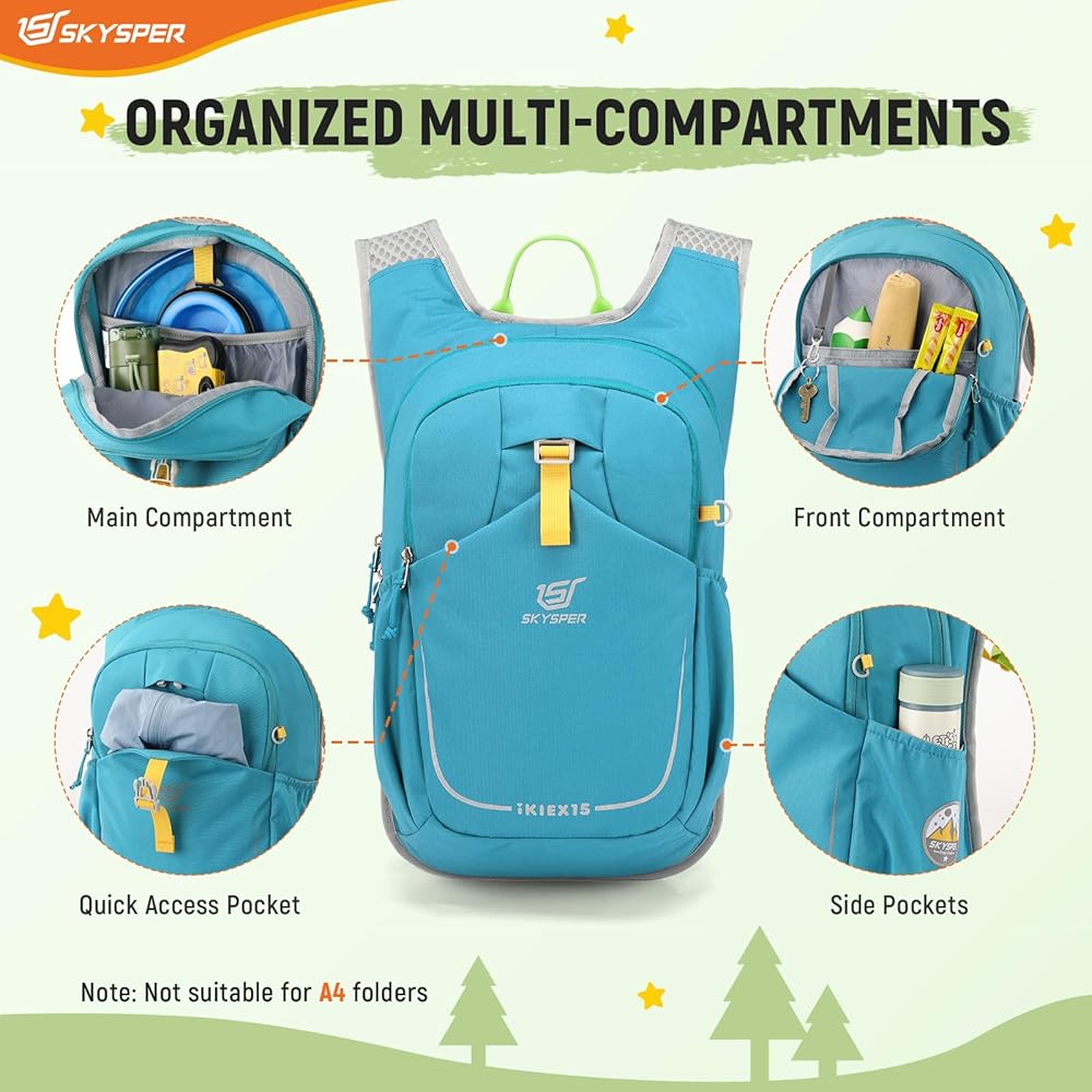 Multi-Compartments: Our 15 liter kid backpack is perfectly sized for daily necessities without feeling overloaded. It featurs a spacious main compartment with a sleeve for hydration, a front compartment for smaller items, and a quick-access pocket for extra clothes or towels (hydration bladder not inclued)