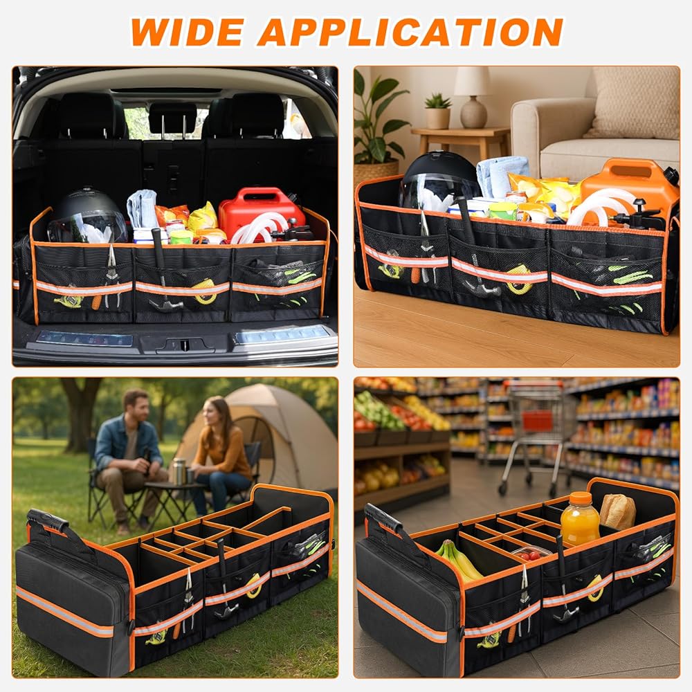Keep your vehicle organized effortlessly with this trunk organizer, suitable for camping trips, road adventures, or everyday use.