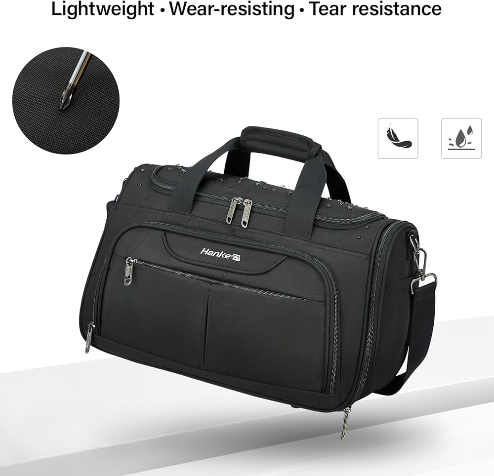 【Durable Material 】Travel tote bags crafted from thick, tear - resistant fabric with meticulous stitching. Paired with smooth zippers and robust metal buckles, The anti - dirty stand - off feet at the bottom keep the bag clean, withstands the rigors of travel.