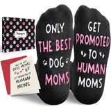 MOM TO BE GIFT: Gifts for expecting mom. The bottom of the socks features a funny secret message written in non-slip ink: "ONLY THE BEST DOG MOMS, GET PROMOTED TO HUMAN MOMS."