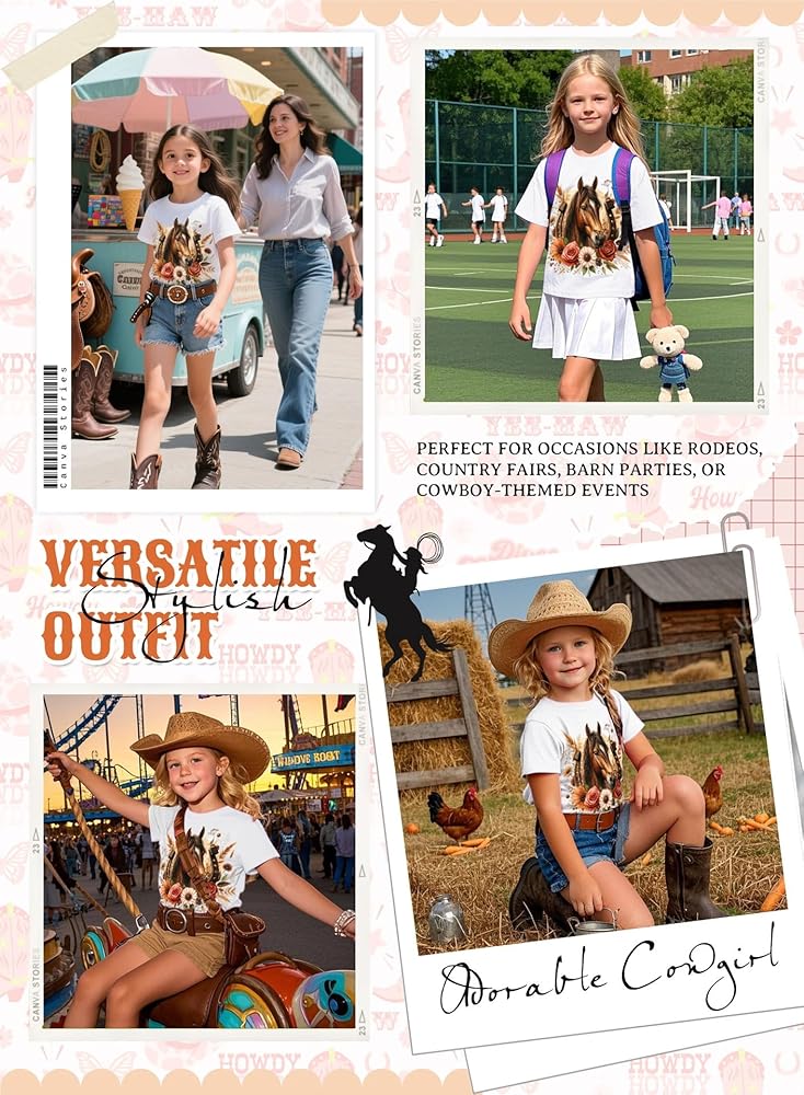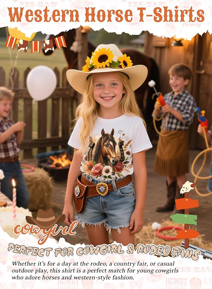 🤠 Perfect for Cowgirl & Rodeo Fans: Whether it's for a day at the rodeo, a country fair, or casual outdoor play, this shirt is a perfect match for young cowgirls who adore horses and western-style fashion.