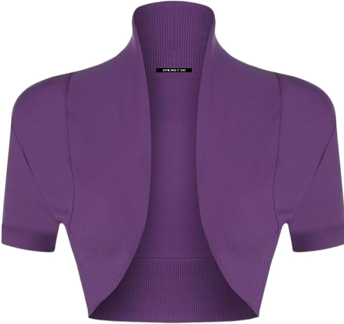 The SXME MIGHT SAY Women's Ribbed Short Sleeve Bolero Crop Shrug Cardigan is the perfect blend of elegance and comfort, making it an essential addition to any wardrobe. Designed with a stylish ribbed open neckline, this chic bolero offers a sophisticated touch while allowing versatility in pairing with various outfits. The short sleeves provide just the right amount of coverage, making it an ideal layering piece for warmer seasons. Crafted from a soft and breathable blend of 95% viscose and 5% elastane, this shrug ensures a comfortable fit that feels gentle against the skin, keeping you cool and at ease throughout the day. Its cropped length is tailored to complement both high-waisted and regular-fit outfits, effortlessly elevating everything from elegant summer dresses to casual crop tops. Whether you're dressing up for a special occasion or adding a stylish cover-up to your everyday look, this lightweight cardigan transitions seamlessly from day to night. Designed for modern convenience, it is easy to care for—simply machine wash and hang dry to maintain its shape and softness.